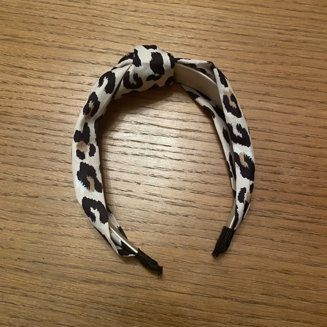 Säljer ett supercoolt leopardmönstrat diadem med en knutdetalj på toppen. Det är i en snygg kombination av svart och beige, perfekt för att piffa upp vilken outfit som helst. Diademet är bekvämt att bära och passar de flesta huvudstorlekar. Perfekt för både vardag och fest!