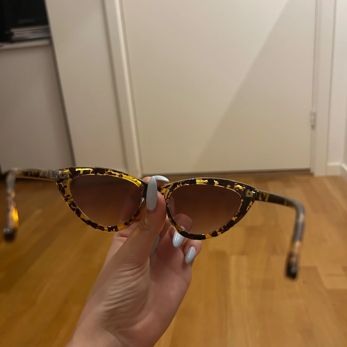 Snygga solglasögon i cat eye-modell med leopardmönstrad båge och bruna glas. Minns inte vart dem är köpta, förmodligen HM eller Glitter 🩷