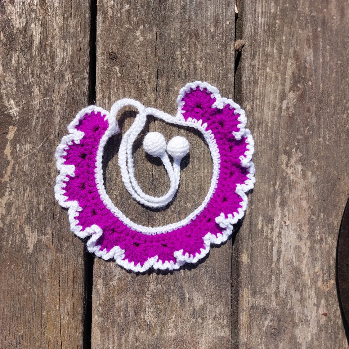 Handgjord choker i lila. Perfekt för att clowna upp det när man vill vara lite lömsk. Knyts med rosett antingen fram eller bak. Kan göras i specifika storlekar utan extra kostnad <3 Meddela för köp.