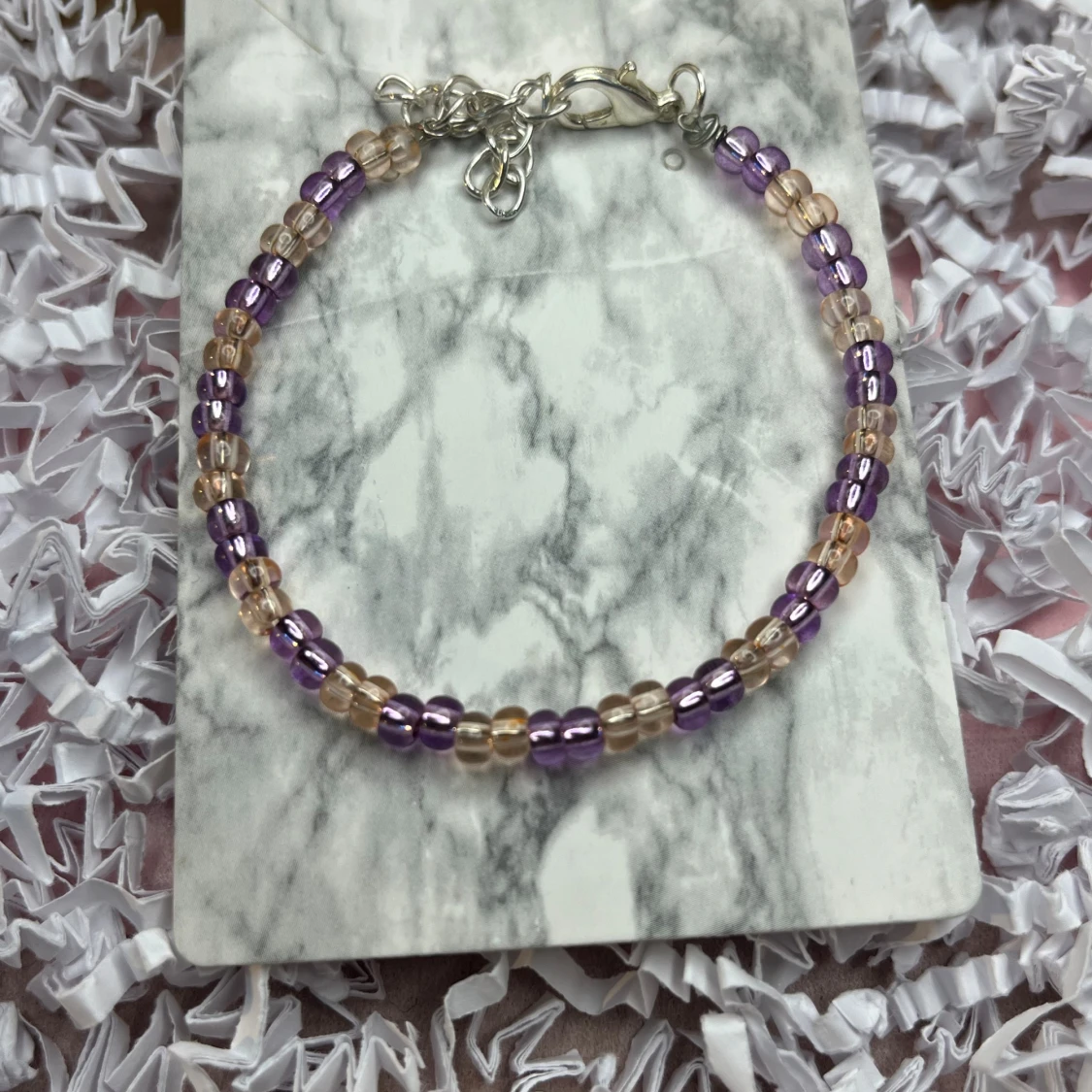 Lila armband med ”stål tråd” (typ), den går att justera. För mer bilder och information, skriv till mig.
