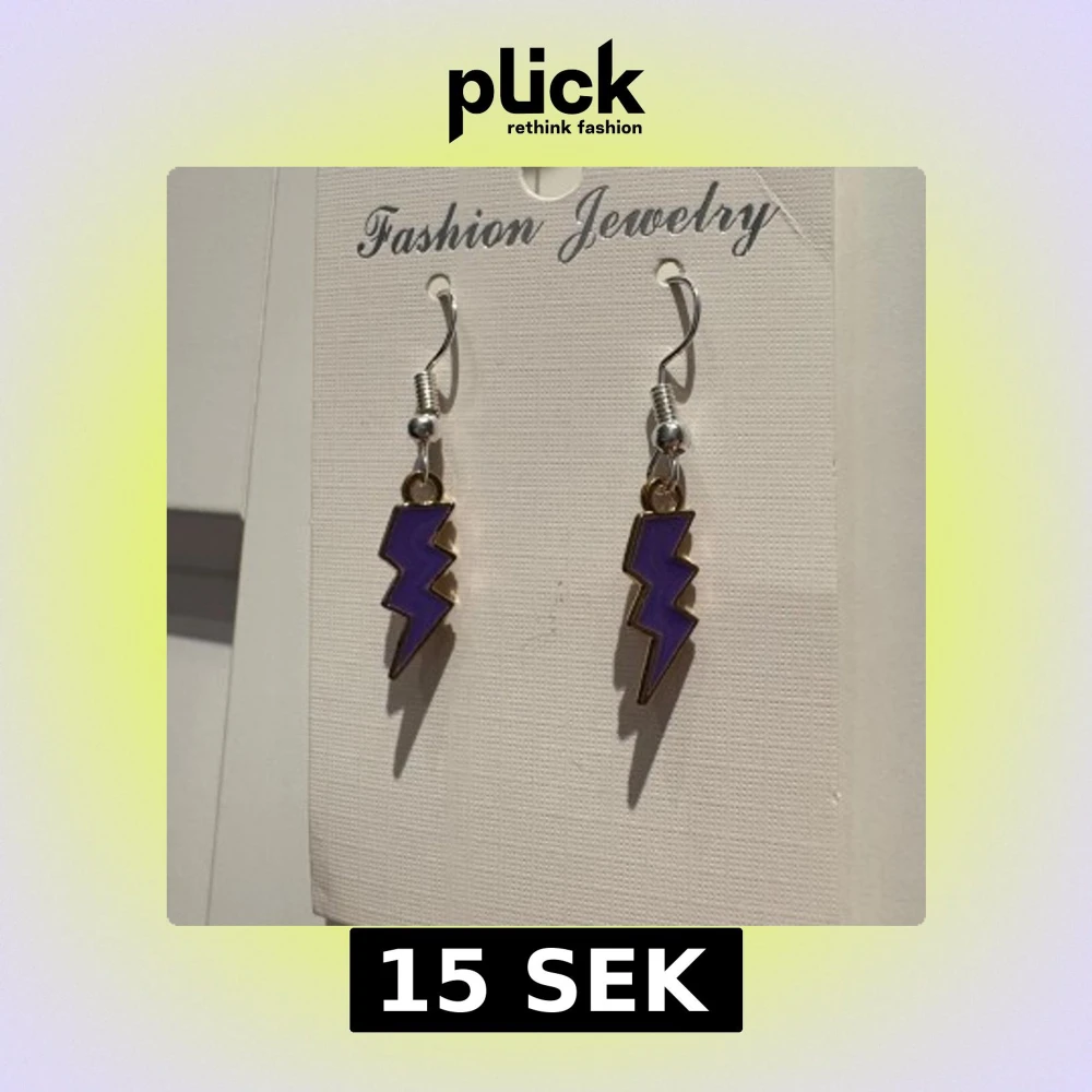 Coola örhängen i form av blixtar med lila färg och guldkant. Perfekt för dig som vill sticka ut med en edgy och unik stil. Hängande modell med metallkrok, passar till alla tillfällen när du vill ha lite extra attityd.