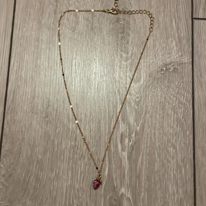 Säljer en fin guldig halsband med en lila jordgubb | fick den som present | aldrig använt