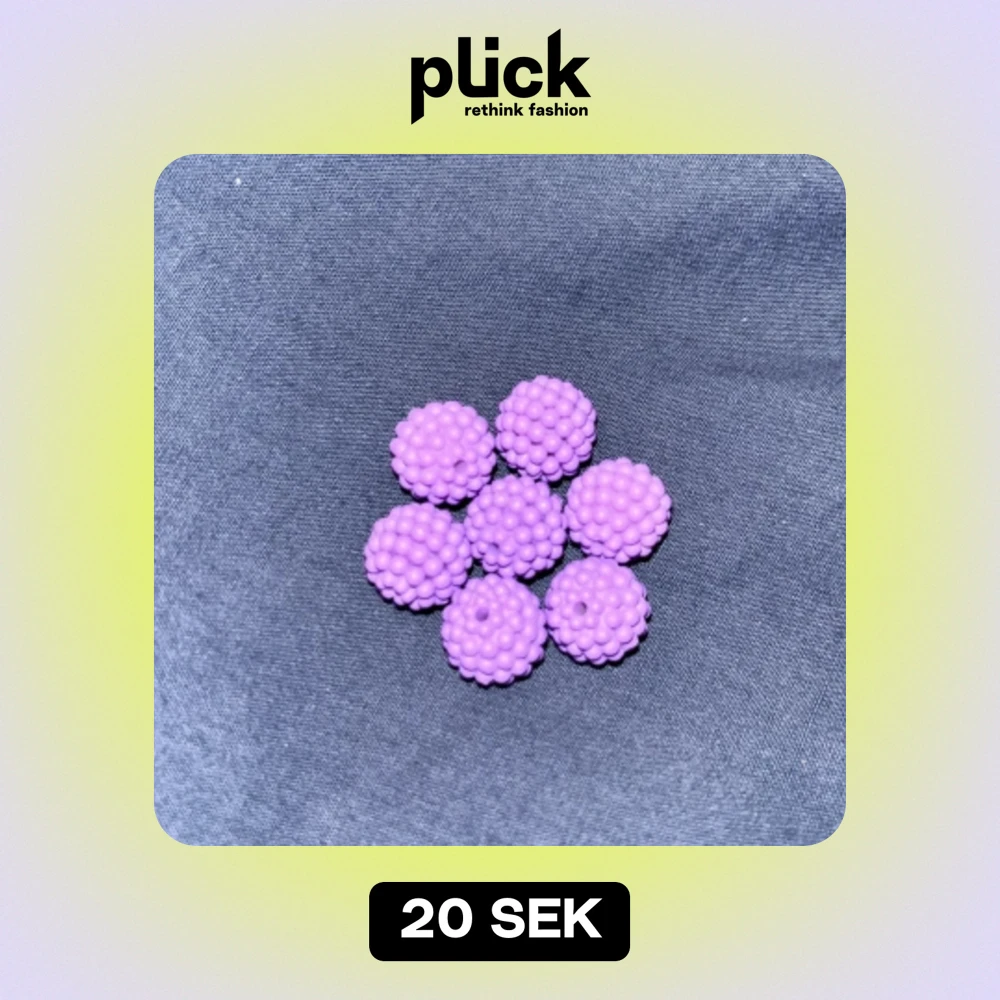 Säljer ett set med sju lila pärlor som har en cool bubbel yta. De är små och lätta, vilket gör dem enkla att sy fast på olika material om man vill piffa upp t.ex sin tröja eller göra ett par örhängen 💜