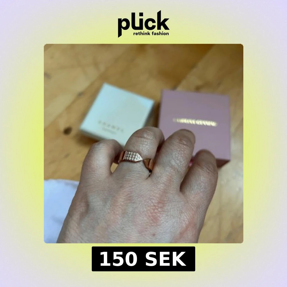 Elegant guldfärgad ring med glittrande stenar i ett triangulärt mönster. Perfekt för att ge en touch av glamour till din stil. Kommer i en fin presentask.
