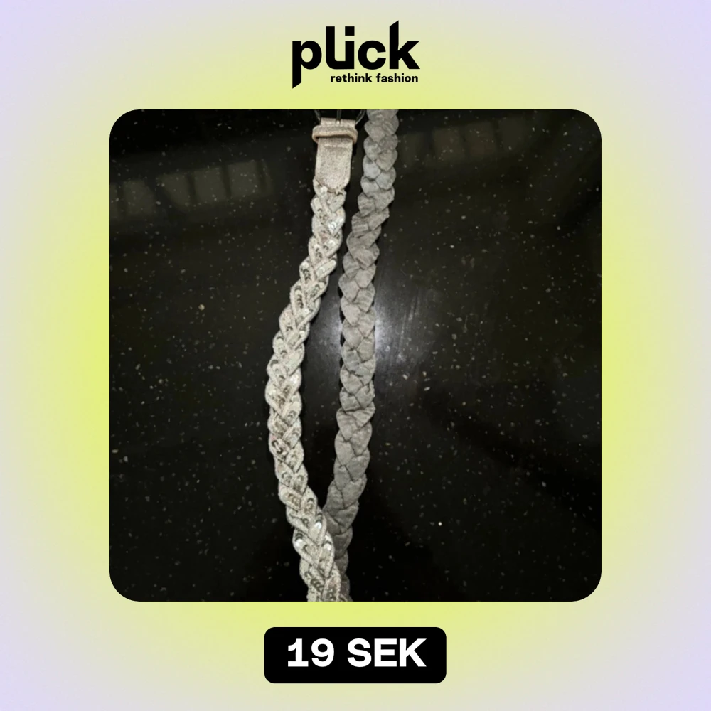 Säljer ett snyggt flätat bälte i silver med glittriga detaljer. Perfekt för att piffa upp vilken outfit som helst! Bältet har ett runt spänne och är i mycket bra skick.