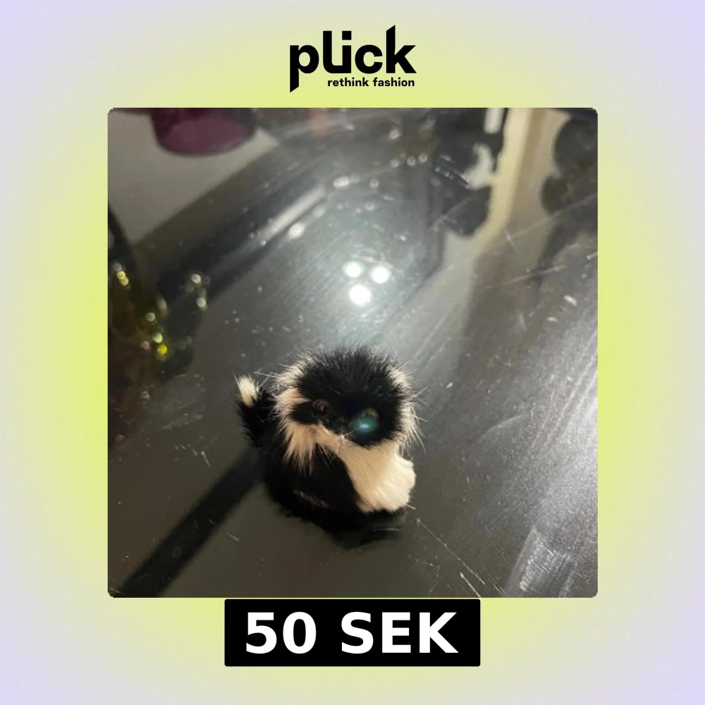 Unik form av en liten katt med fluffig svart och vit päls. Perfekt för dig som älskar djur och vill ha något gulligt .