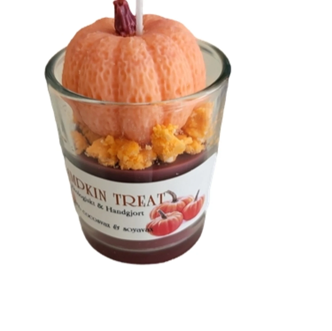 Handgjort ljus av cocosvax samt soyavax. Pumpkin treat finns även att köpa på min instagram och hemsida www.dessertcandles.se
