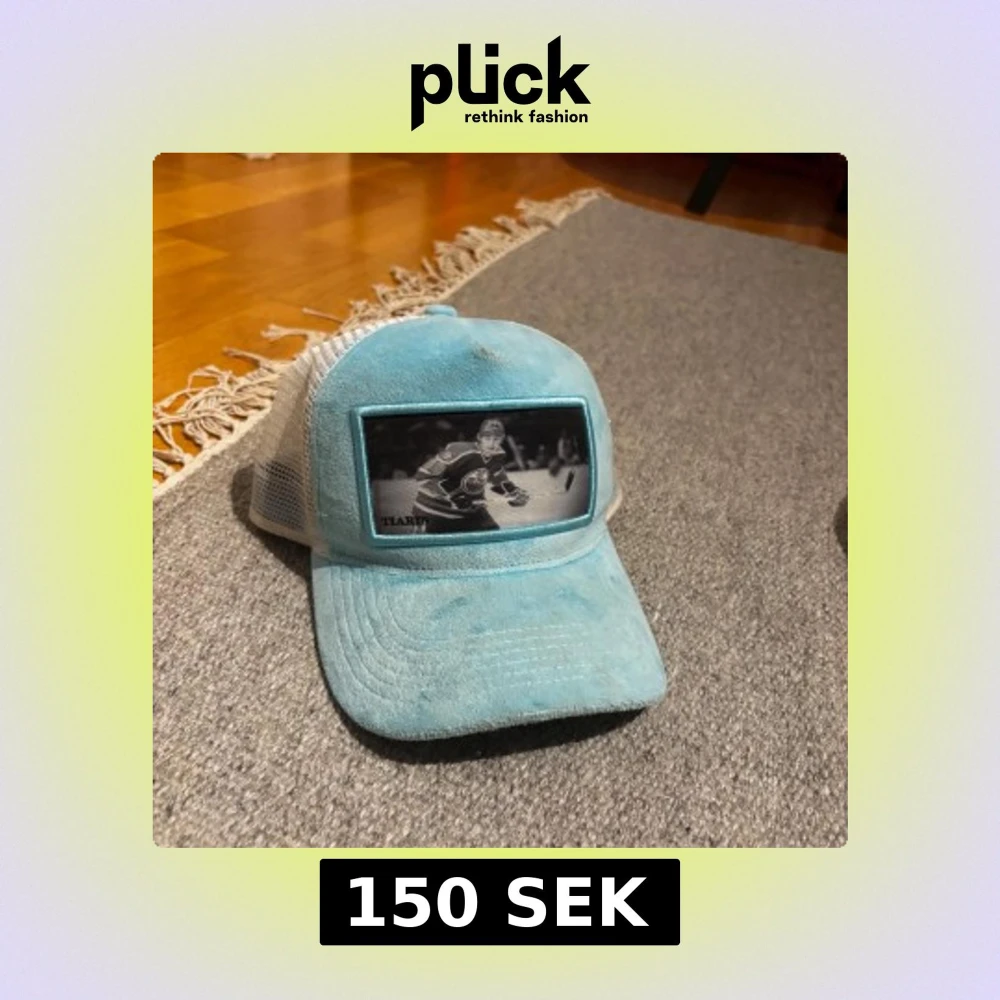 Säljer en ljusblå keps från TIARIS Collection No.4 med mesh på sidorna och baksidan för extra ventilation. Framtill finns en svartvit patch med hockeymotiv. Justerbar passform med plastspänne bak. Perfekt för dig som gillar sportig stil.
