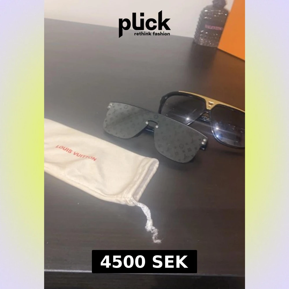 Säljer två par svarta Louis Vuitton solglasögon med spegelglas och ikoniskt LV-monogram över hela linsen. Modellen har en futuristisk shield-form och svarta skalmar. Kommer med originalfodral och tygpåse med Louis Vuitton-logga. Båda solglasögon kommer med