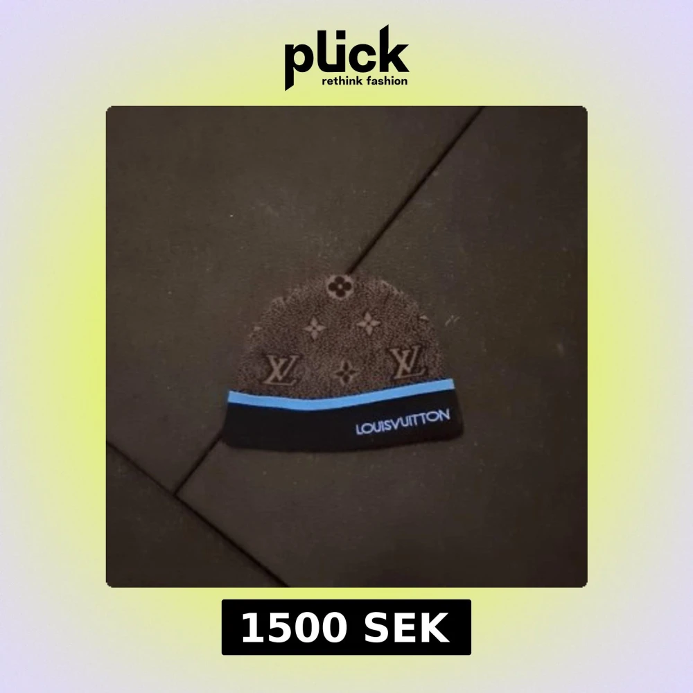 Snygg mössa från Louis Vuitton med deras ikoniska monogrammönster. Mössan har en blå rand och märkesnamnet broderat i samma färg. Perfekt för att hålla stilen i kallare väder.