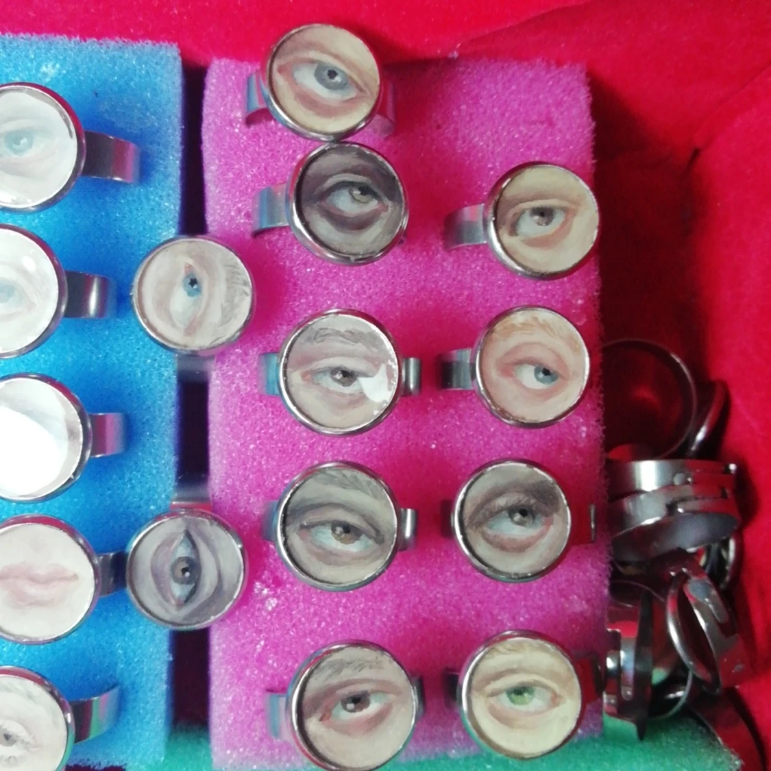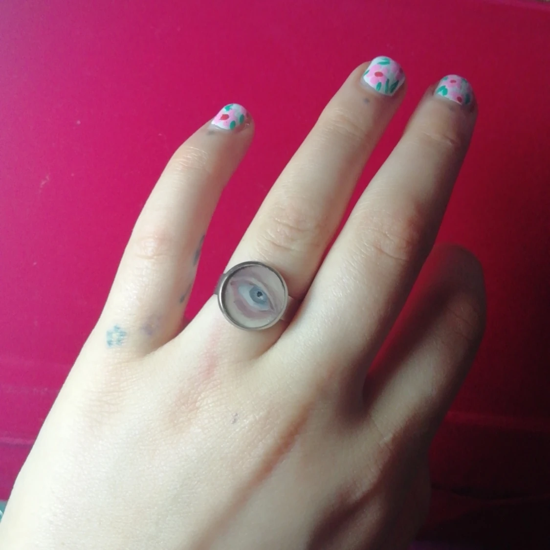99 kr st-Lovers eye ring var populära under 1700 talet, oftast målade man ögat hos en person man älskar eller har förlorat. Ringen är målad i oljefärg och belagt med ett lager diamant resin som ej repar eller gulnar. Självaste ringen är rostfritt stål. Gå in på min insta lovers_eye_ för fler bilder