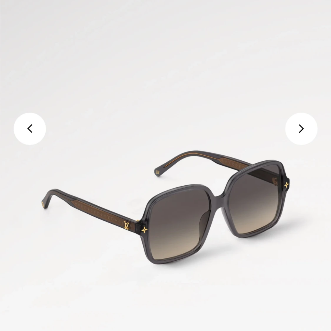 Snygga solglasögon från Louis Vuitton med fyrkantig form och svarta bågar i acetat. Glasen är mörktonade och har en grå gradient. Guldiga LV-detaljer och logotyp på skalmarna ger en lyxig vibe. Perfekt för dig som vill sticka ut med exklusiv stil.
