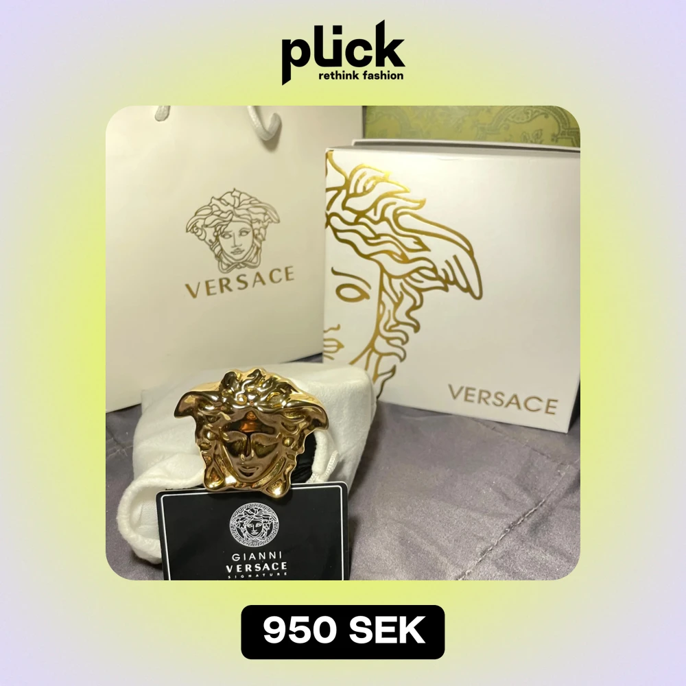 Säljer ett snyggt svart skärp från Versace med ett stort, ikoniskt guldspänne i form av Medusa. Perfekt för att ge din outfit en lyxig touch. Skärpet är i nytt skick och kommer med originalförpackning och påse. Passar både till fest och vardag.