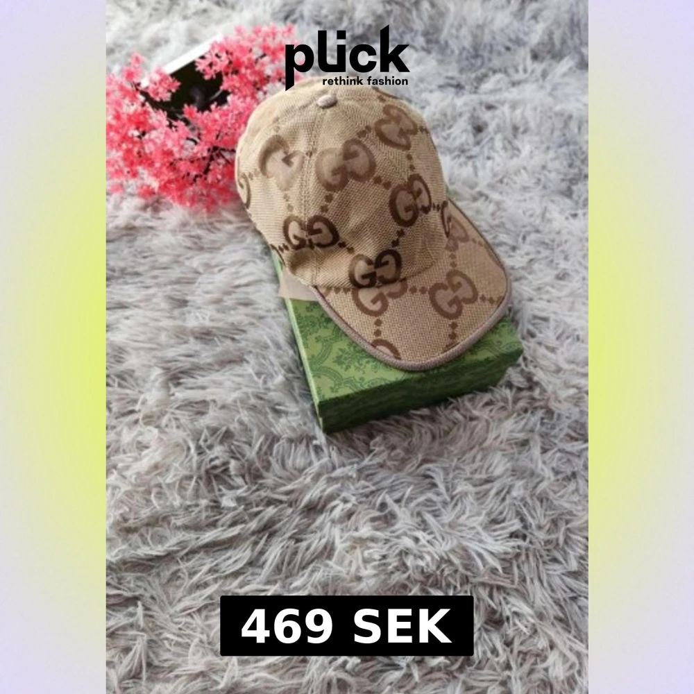 Säljer en beige keps med det klassiska GG-logomönstret i brunt. Kepsen har böjd skärm och är tillverkad i ett slitstarkt bomullsmaterial. Perfekt accessoar för att lyfta din outfit med en lyxig touch.
