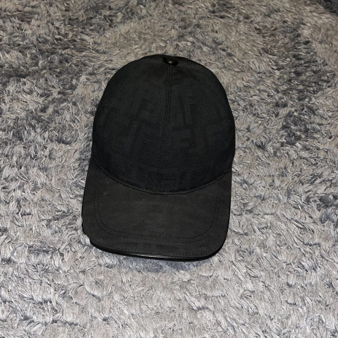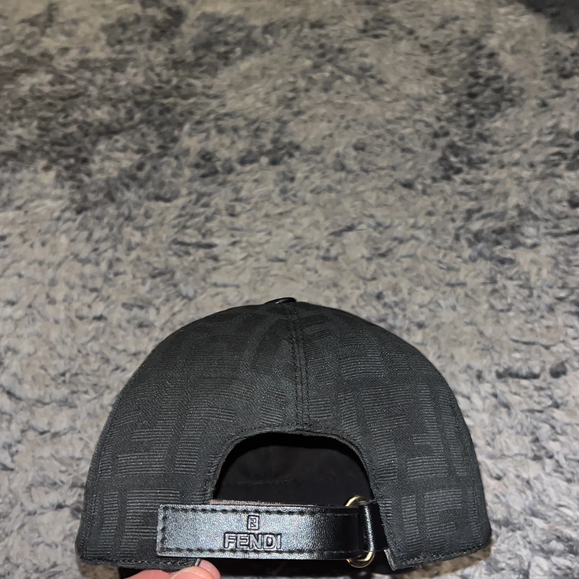 Snygg svart keps från Fendi med diskret mönster och justerbart spänne baktill. Perfekt för en stilren look.