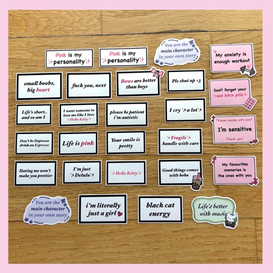 olika text klistermärken designade av lovelyhomecraft 🩷8 kr/styck eller mängdrabatt! Frakt (18 kr frimärke) 🤍