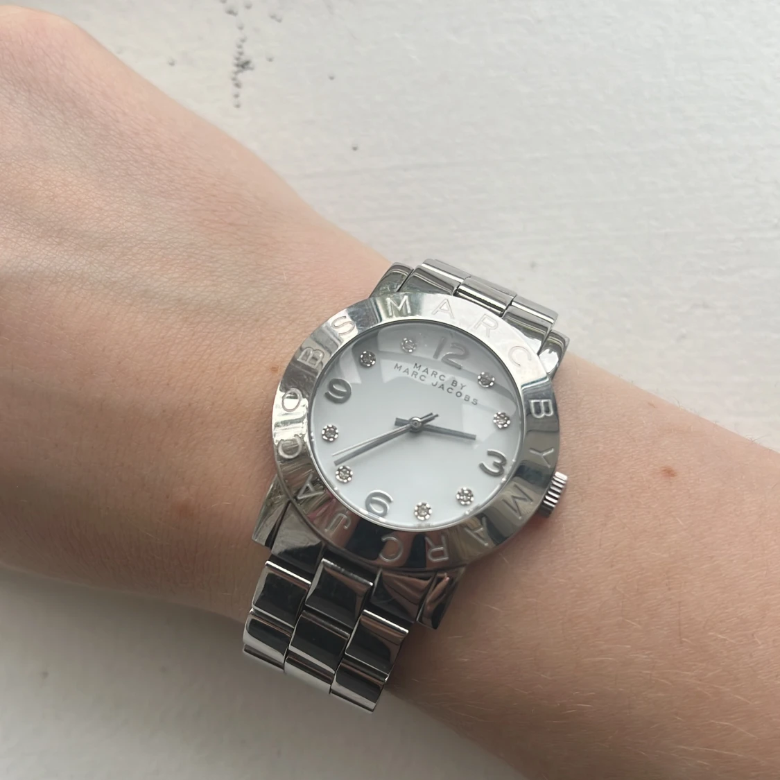 Superfin klocka från Marc Jacobs i modell Amy. Köpt för några år sedan men väldigt sparsamt använd. Anpassad till min handled som är 17cm.