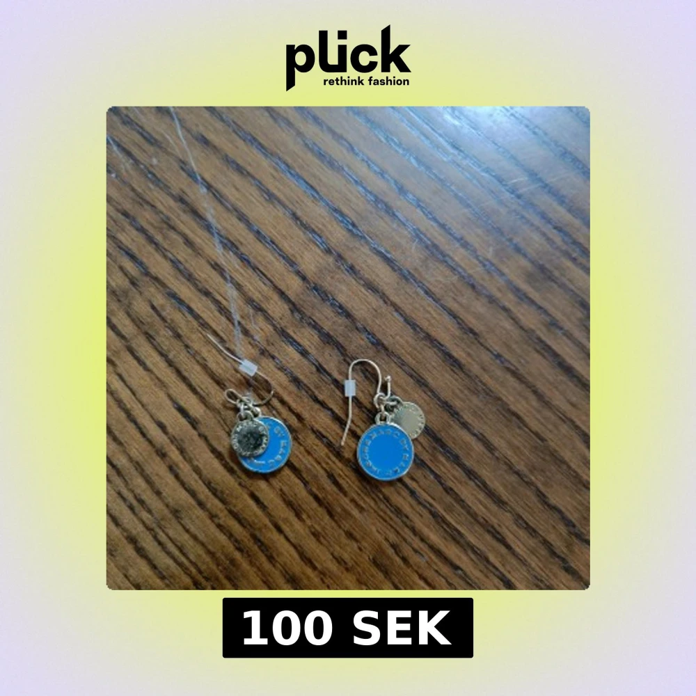 Snygga örhängen från Marc Jacobs med rund blå bricka och guldfärgade detaljer. Märkets logga är ingraverad runt den blåa brickan och det hänger även en liten guldfärgad charm bredvid. Perfekt accessoar för att lyfta din stil.