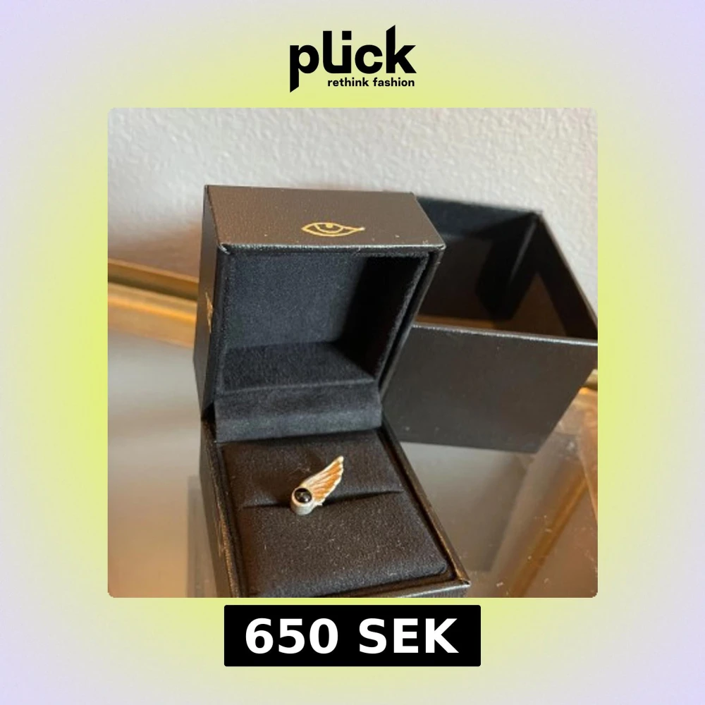 Från 2017, men fortfarande precis lika fint. Dom wings som säljs nu har pärla istället. Säljer bara ett örhänge, inte ett par. Ask och yttre ask medföljer. Inget kvitto med 100% äkta. Material: 925 Sterling Silver Height: 7mm, Width: 18mm