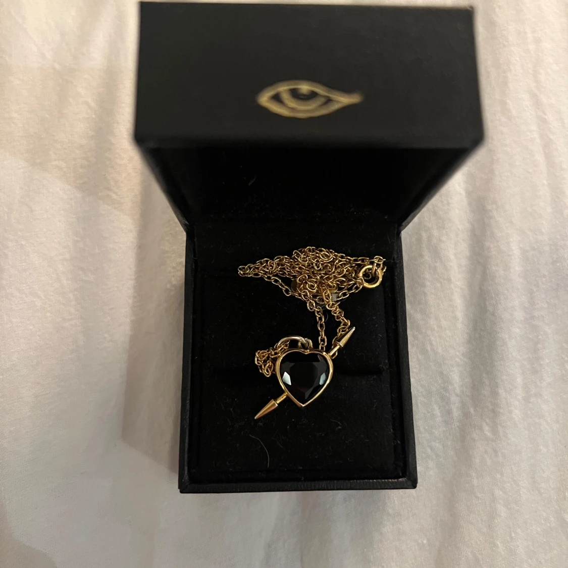 Säljer mitt superfina guldhalsband med ett svart hjärthänge från Maria Nilsdotter! Super fin & även jätte bra julklapp! Kan även byta mot halsbandet med flera pärlor från Maria!