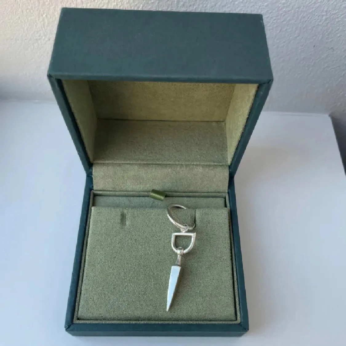Coolt örhänge i silverfärg med en spetsig, avlång charm som hänger ner. Minimalistisk och edgy design som passar perfekt för dig som gillar stilrena smycken med attityd. Levereras i en snygg grön ask.
