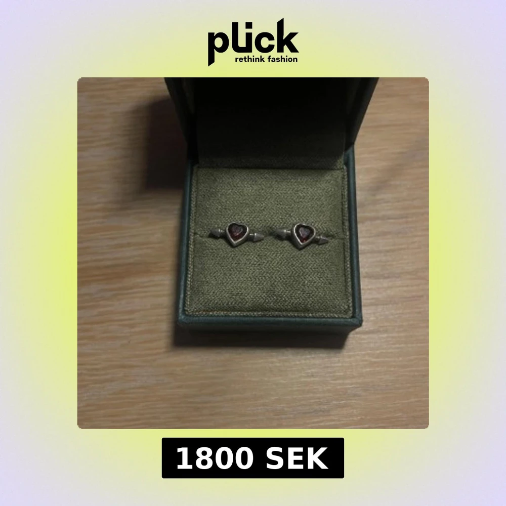 Säljer ett par jättesnygga örhängen från Maria Nilsdotter i silver med röda hjärtformade stenar och pil-detaljer. Nypris 2600 kr för paret