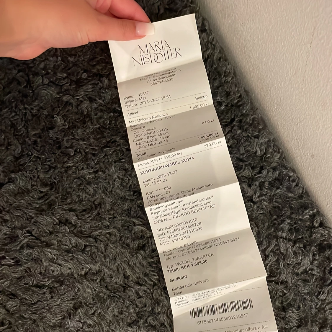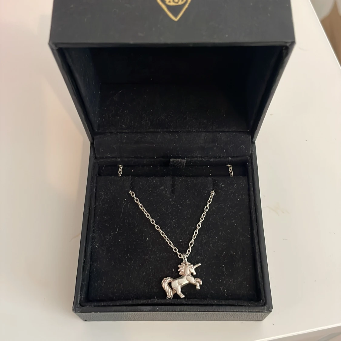 Maria Nilsdotter halsband. Unicorn halsband i silver från Maria Nilsdotter. Kvitto och orginal box kommer med. Sparsamt använd. Längd 45