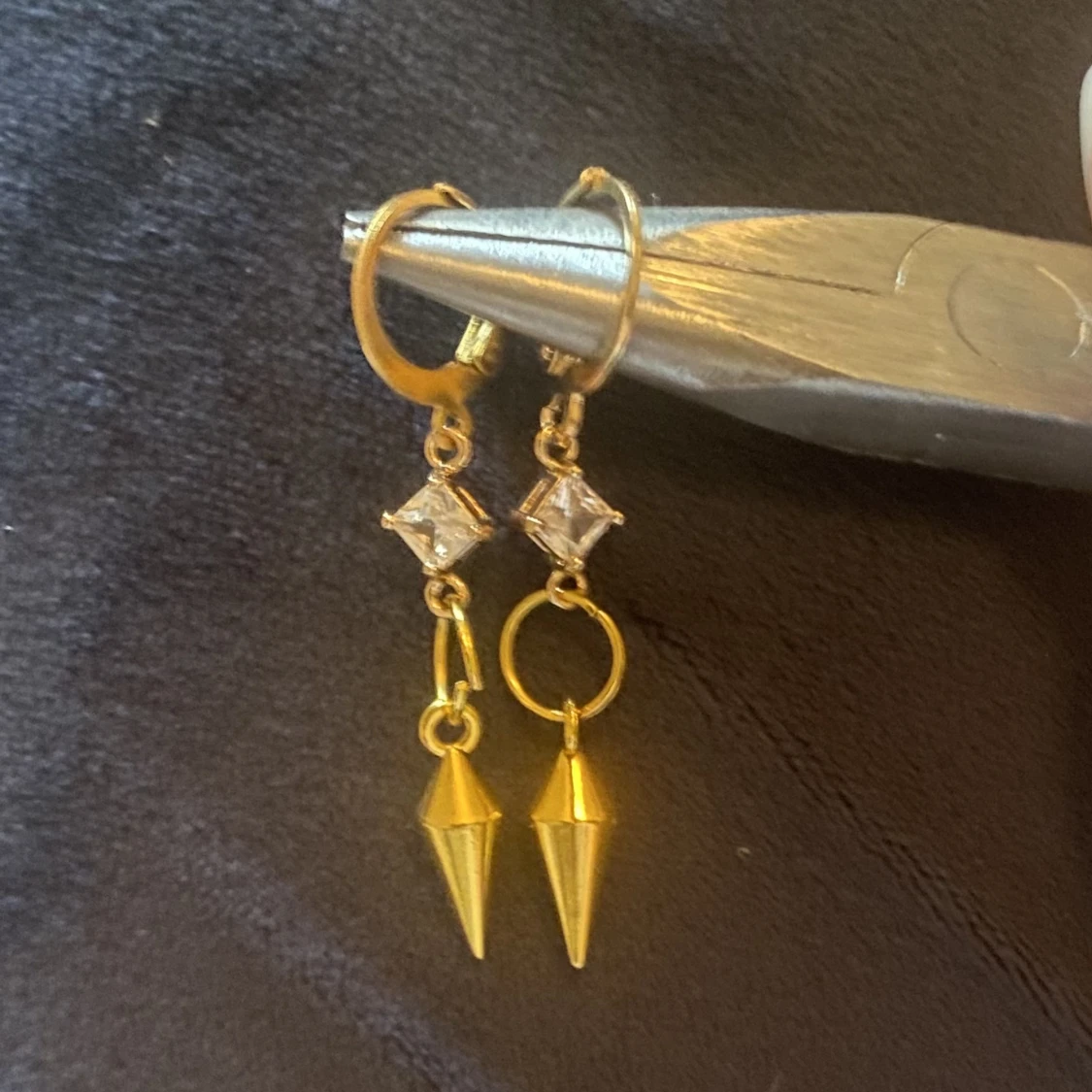 Superfina egengjorda örhängen i guld med en nit och en liten diamant❤️superfina!! 85kr
