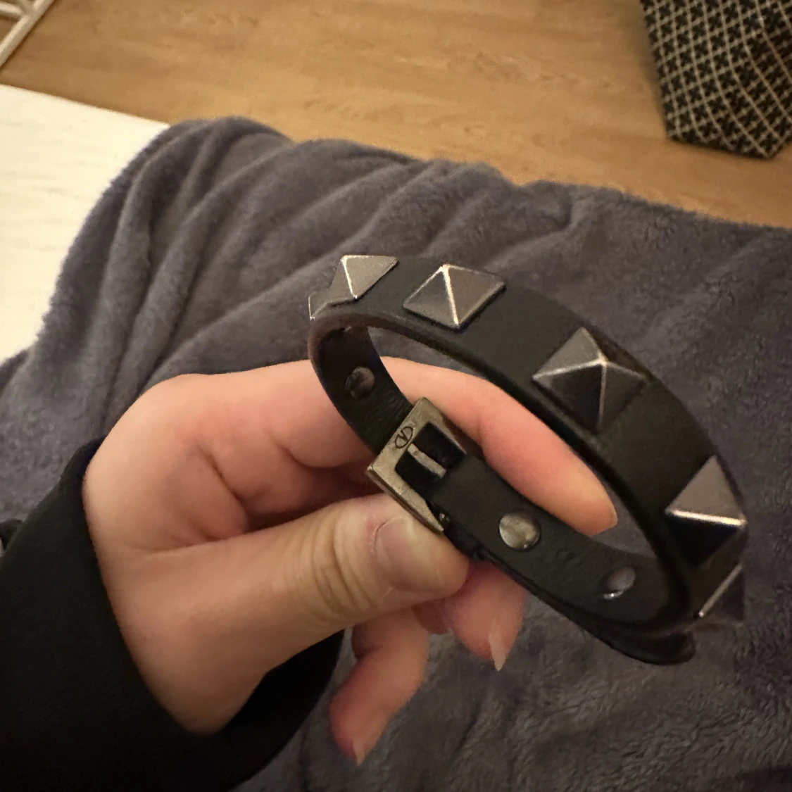 !1a bild lånad! Säljer mitt fina svarta armband med mörka nitar. Köpte det nyligen från Plick i väldigt bra skick men har tyvärr inte äkthetsbevis eller box:( . Fortfarande superskick! Skriv vid frågor❣️
