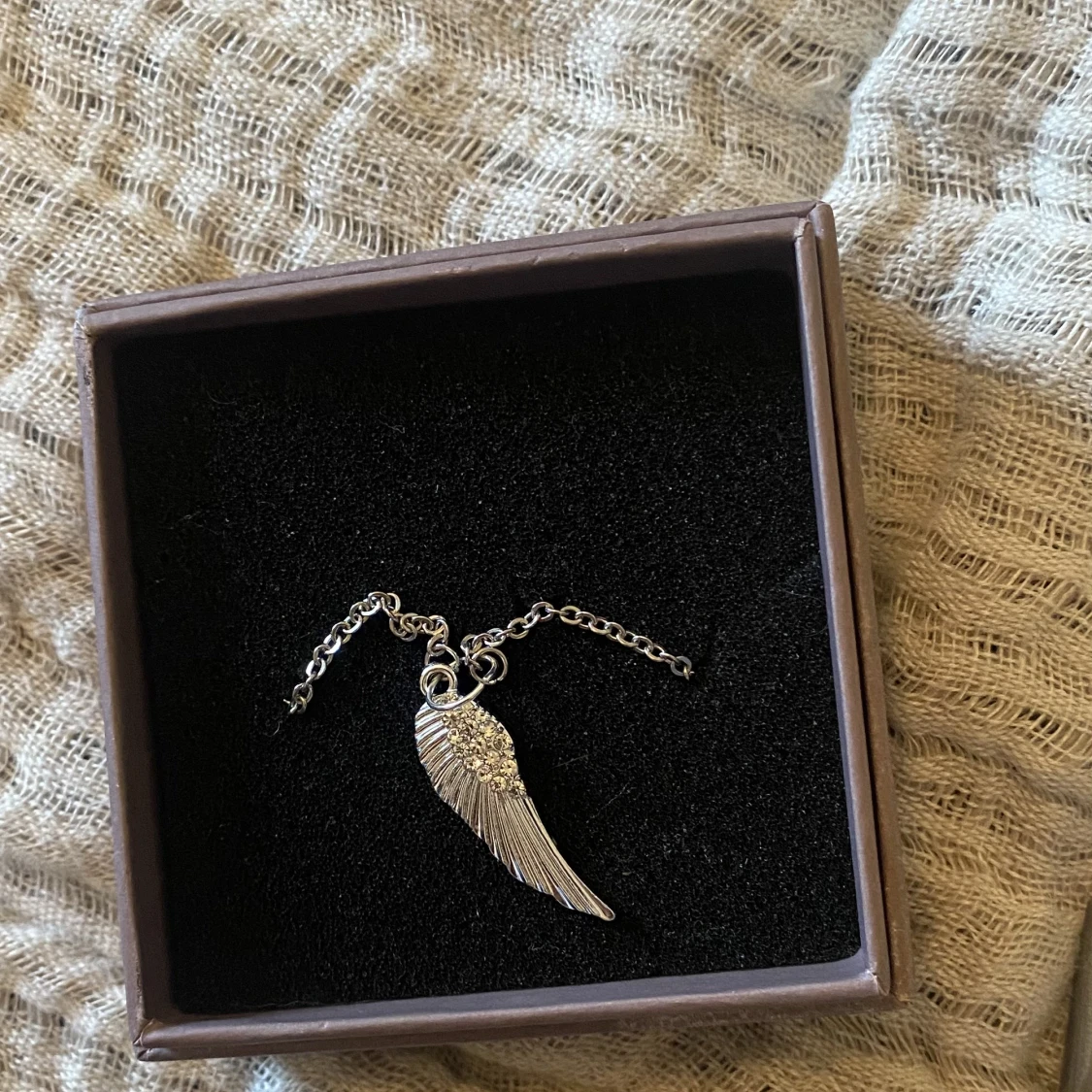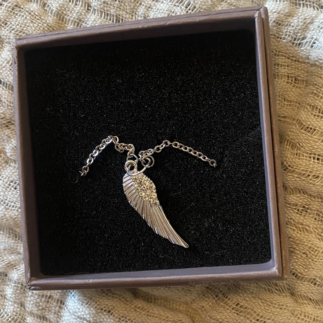 Säljer denna super fina egengjorda halsbandet med en vinge på❤️69kr