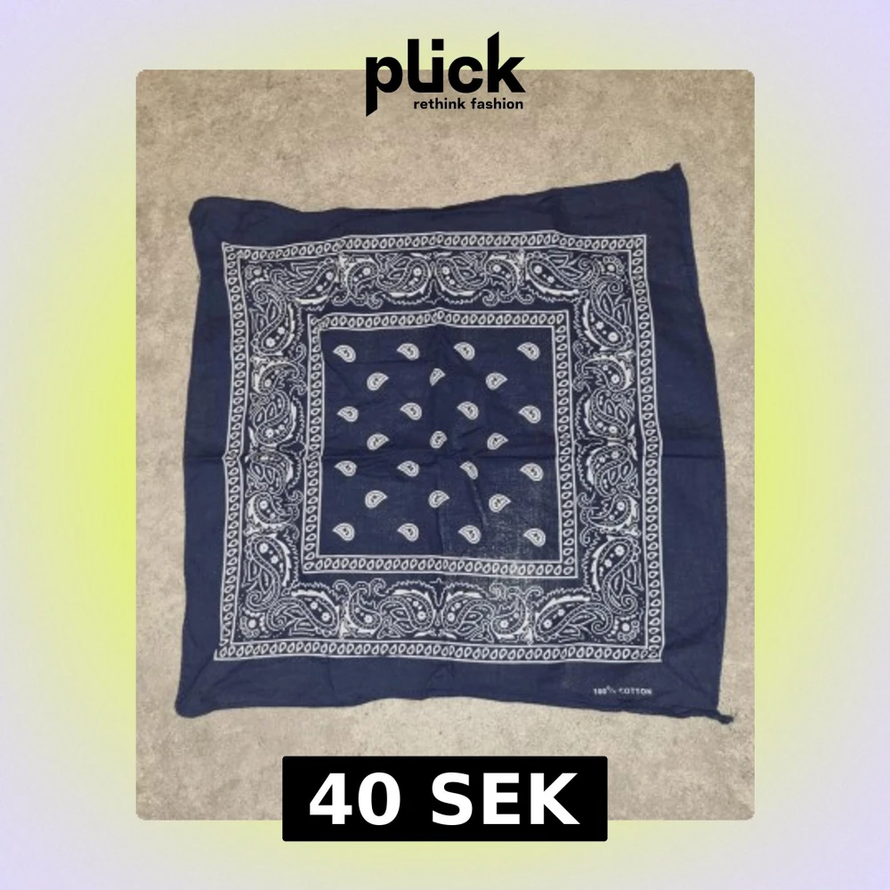 Snygg marinblå halsduk med klassiskt paisleymönster i vitt. Tillverkad i 100% bomull, perfekt att knyta runt halsen eller använda som accessoar. Fyrkantig form och mjukt material som känns skönt mot huden.