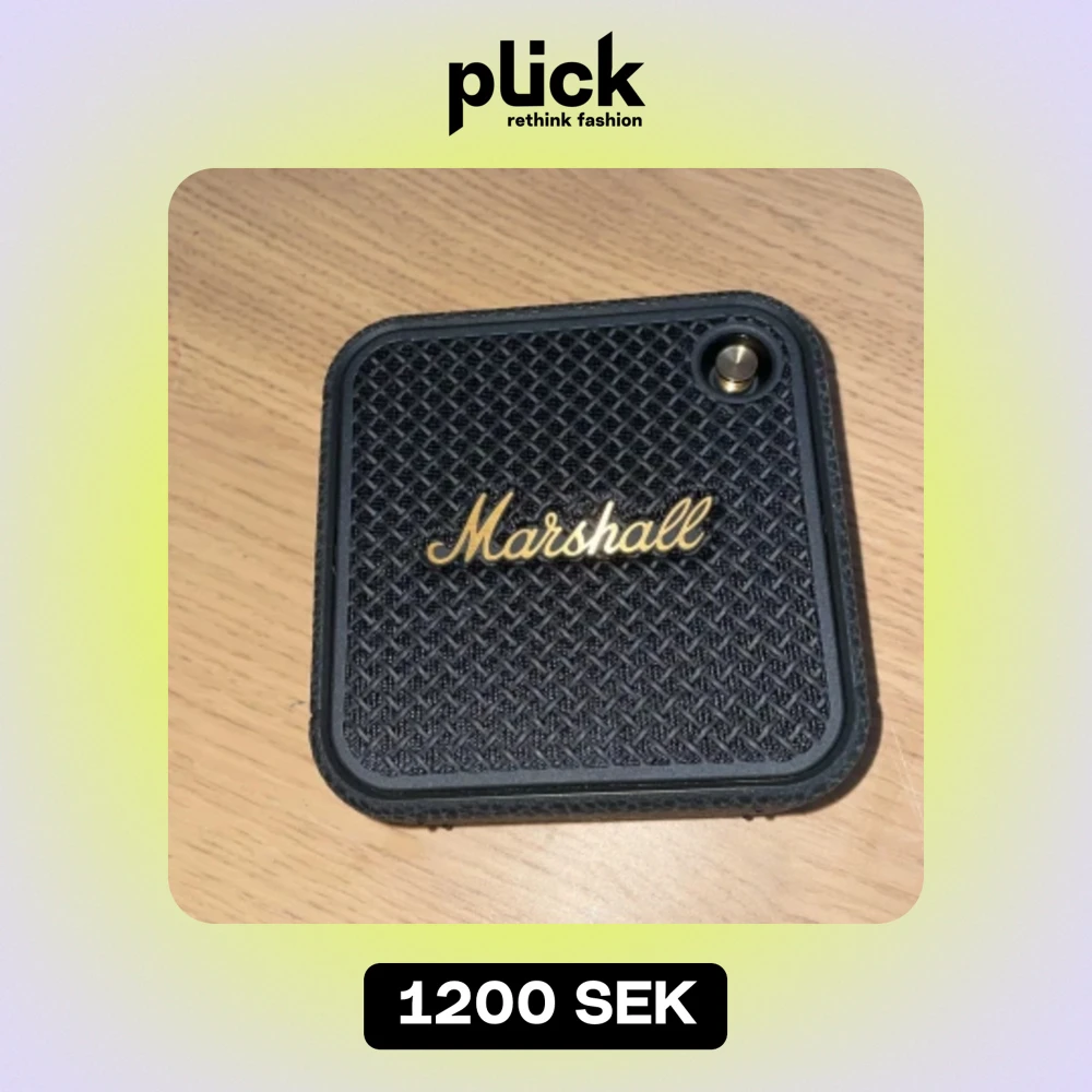 Säljer en Marshall Willen II Bluetooth-högtalare. Den är damm- och vattentät och erbjuder över 17 timmars bärbar speltid. Perfekt för musikälskare som vill ha högkvalitativt ljud i ett kompakt format. Högtalaren har en snygg svart design .