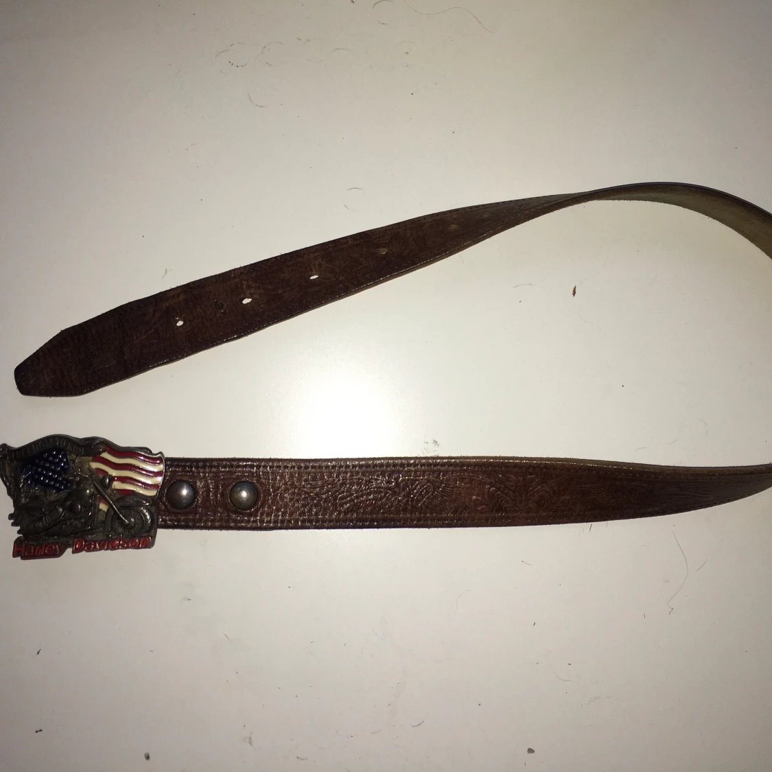Fet Harley bälte med MC och amerikansk flagga, väldigt fint skick. Möts helst inom Stockholm men frakt kan gå att lösa annars.