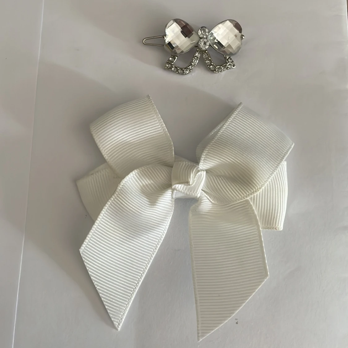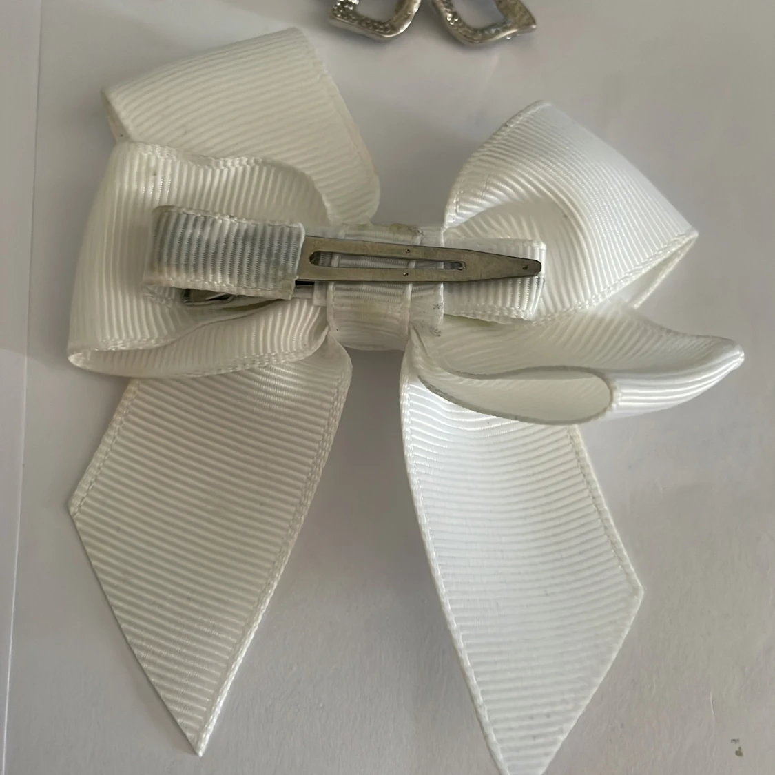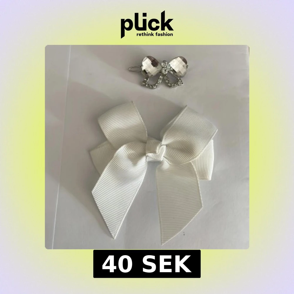 Två rosetthårspännen, den i metall är i bra skick, den andra har missfärgningar, säljs tillsammans💕