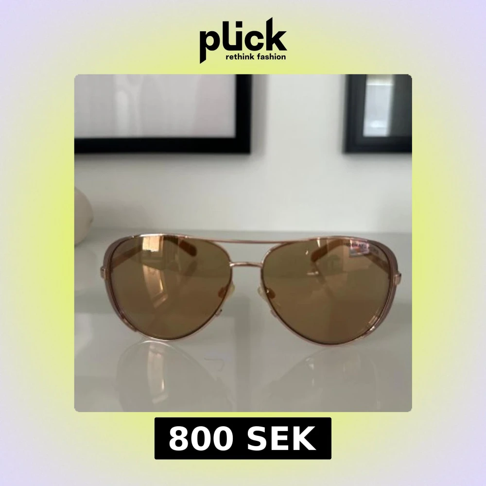 Snygga aviator solglasögon från Michael Kors med guldfärgad metallbåge och bruna tonade linser. Klassisk pilotform med tunna skalmar och justerbara näskuddar för extra komfort. Perfekt accessoar för en cool och trendig look.