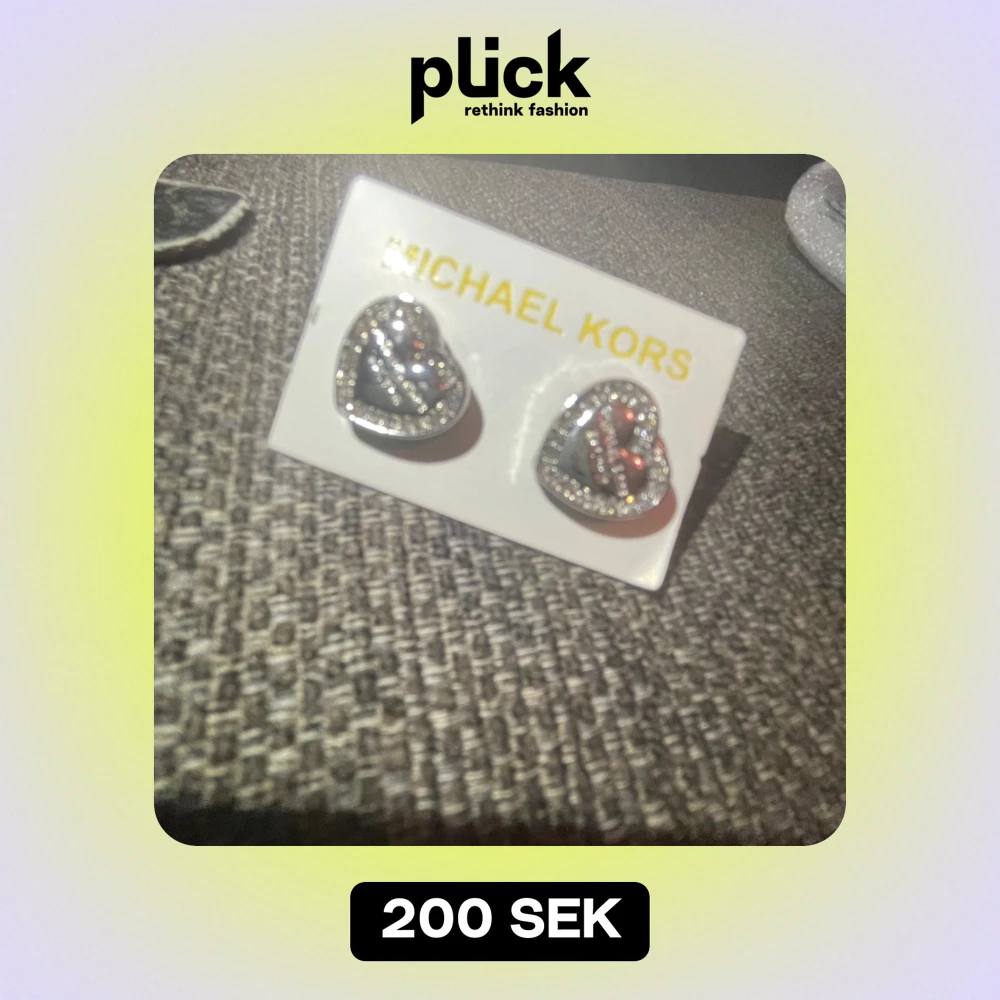 Säljer ett par superfina hjärtformade örhängen från Michael Kors. De är i silverfärg och glittrar med små stenar runt kanterna. Perfekta för att ge en extra touch till din outfit, oavsett om det är till vardags eller fest. Kommer i originalförpackning.
