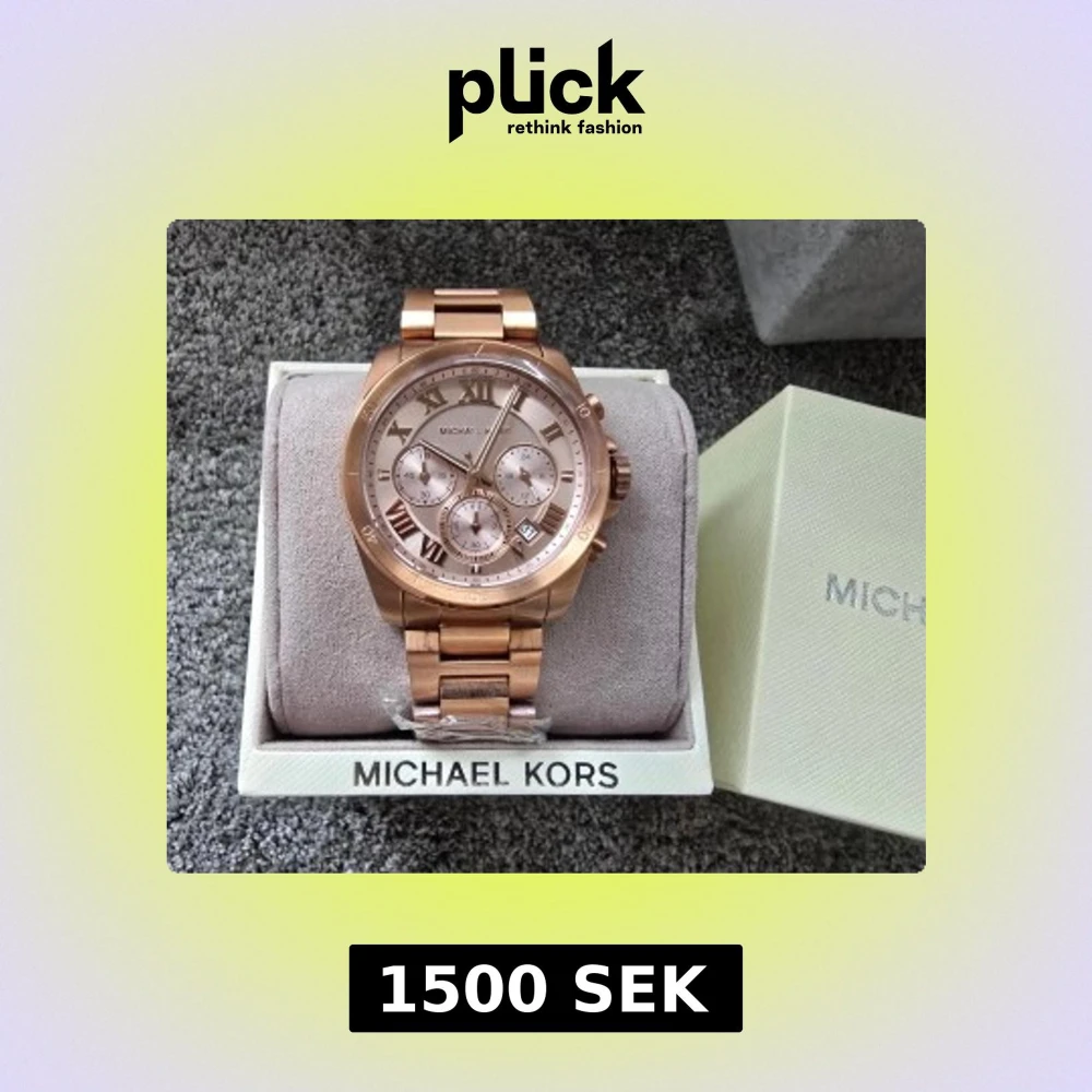 Stilren Michael Kors-klocka i roséguld med metallänk. Elegant urtavla med romerska siffror, kronograf och datumvisning. Klockan är helt ny och oanvänd med skyddsplast kvar och levereras i originalask med kudde och manual. Perfekt som present eller julklapp.