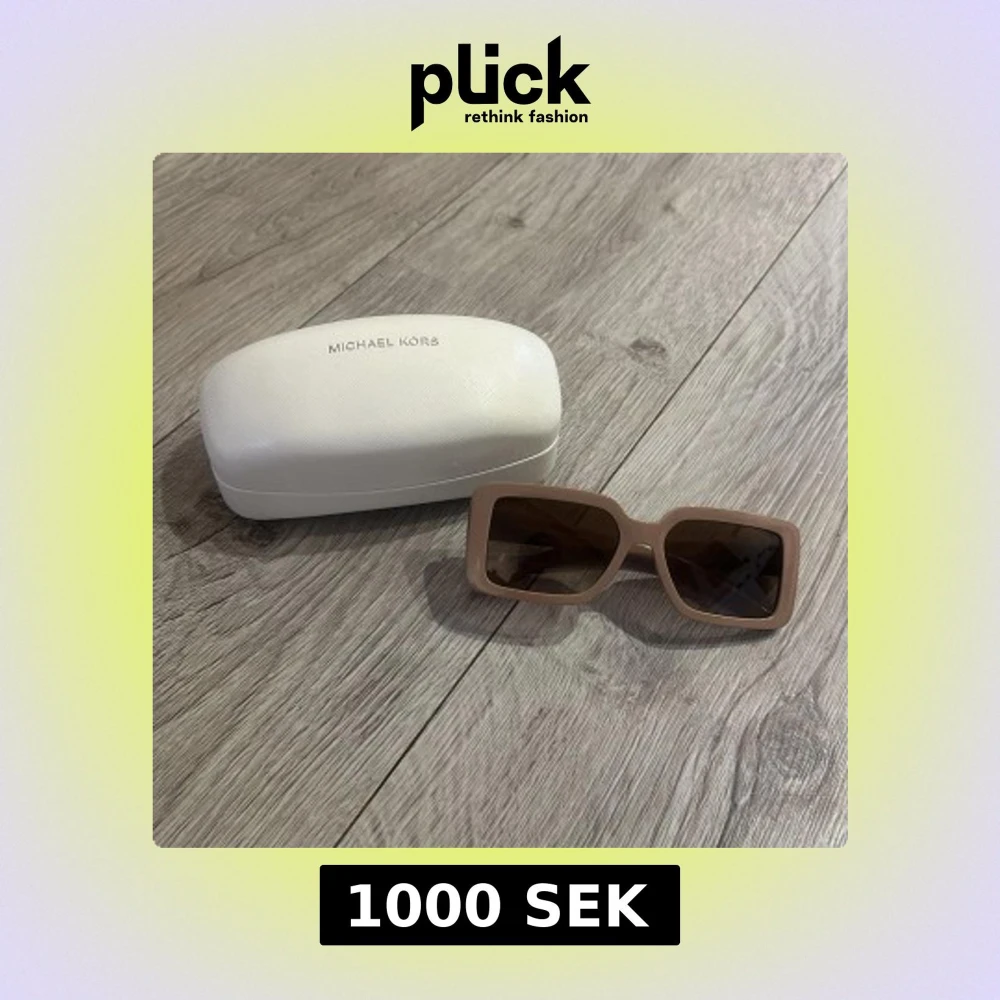 Snygga solglasögon från Michael Kors i en trendig beige/ rosa färg. De har en fyrkantig form och logotypen tryckt på bågarna. Perfekta för att ge en stilren touch till din look. Kommer med ett vitt fodral för säker förvaring.