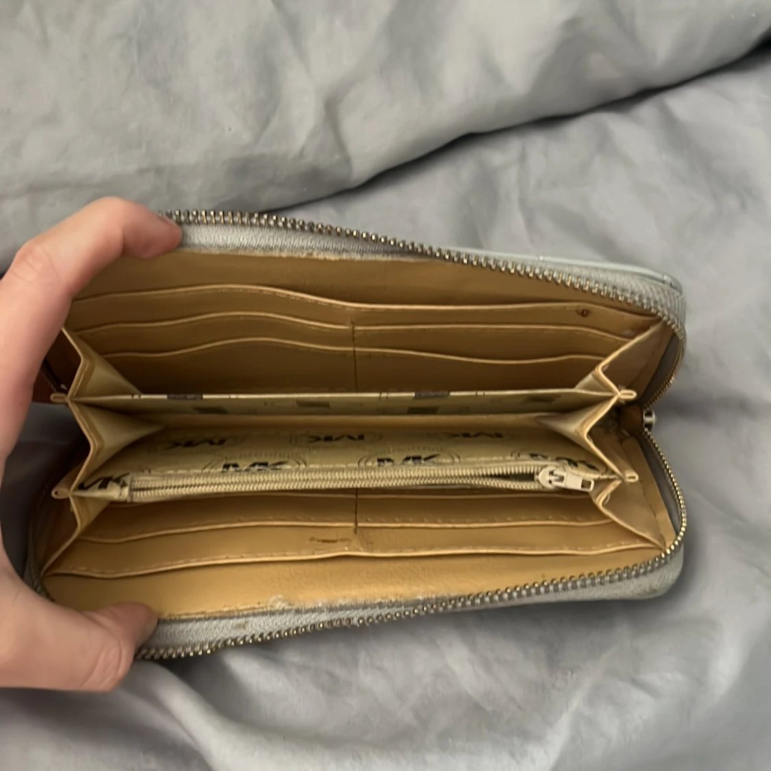 Jätte fin plånbok men dragkedjan är lite slö vid en vis del på plånboken. De har lite repor på själva MK märket där av priset.