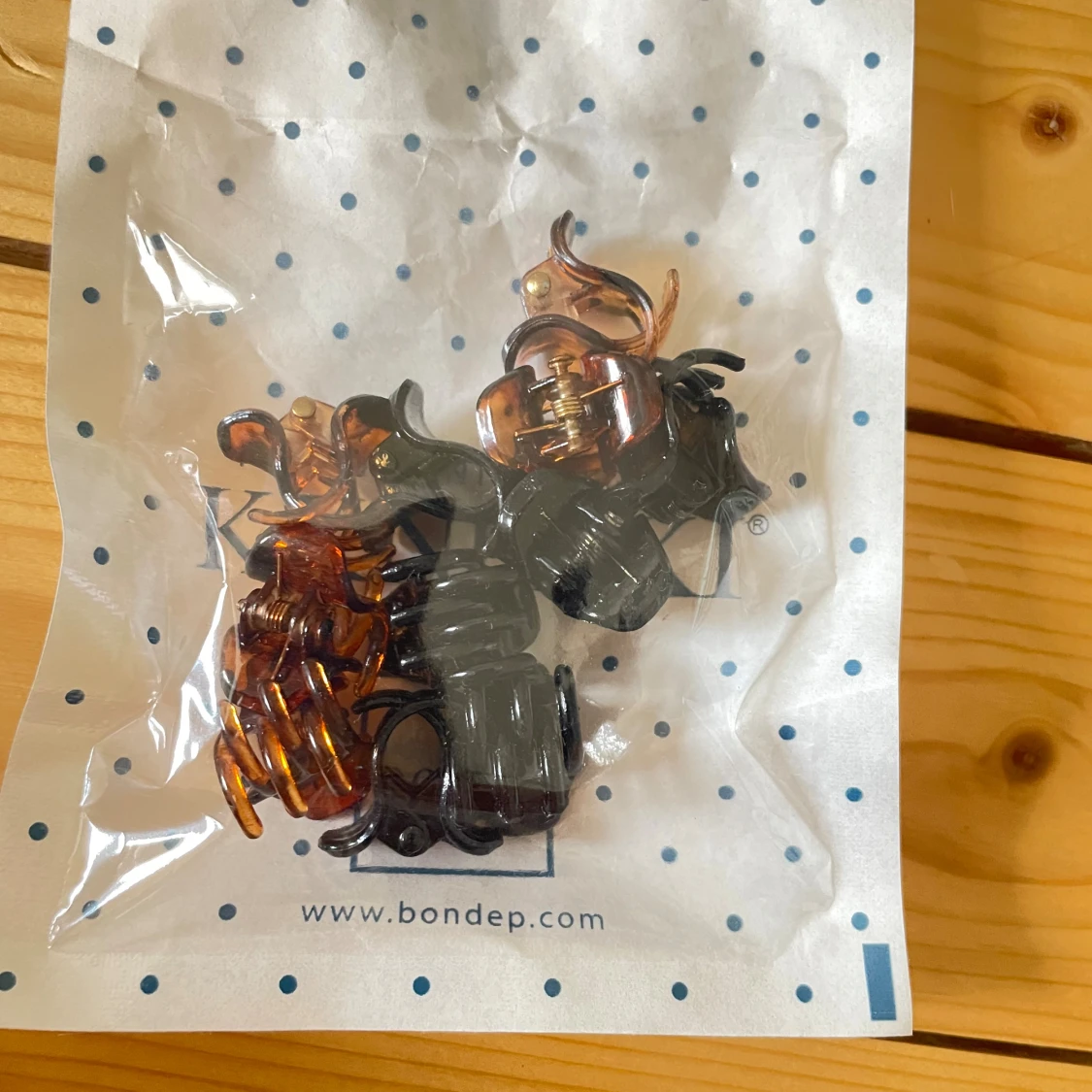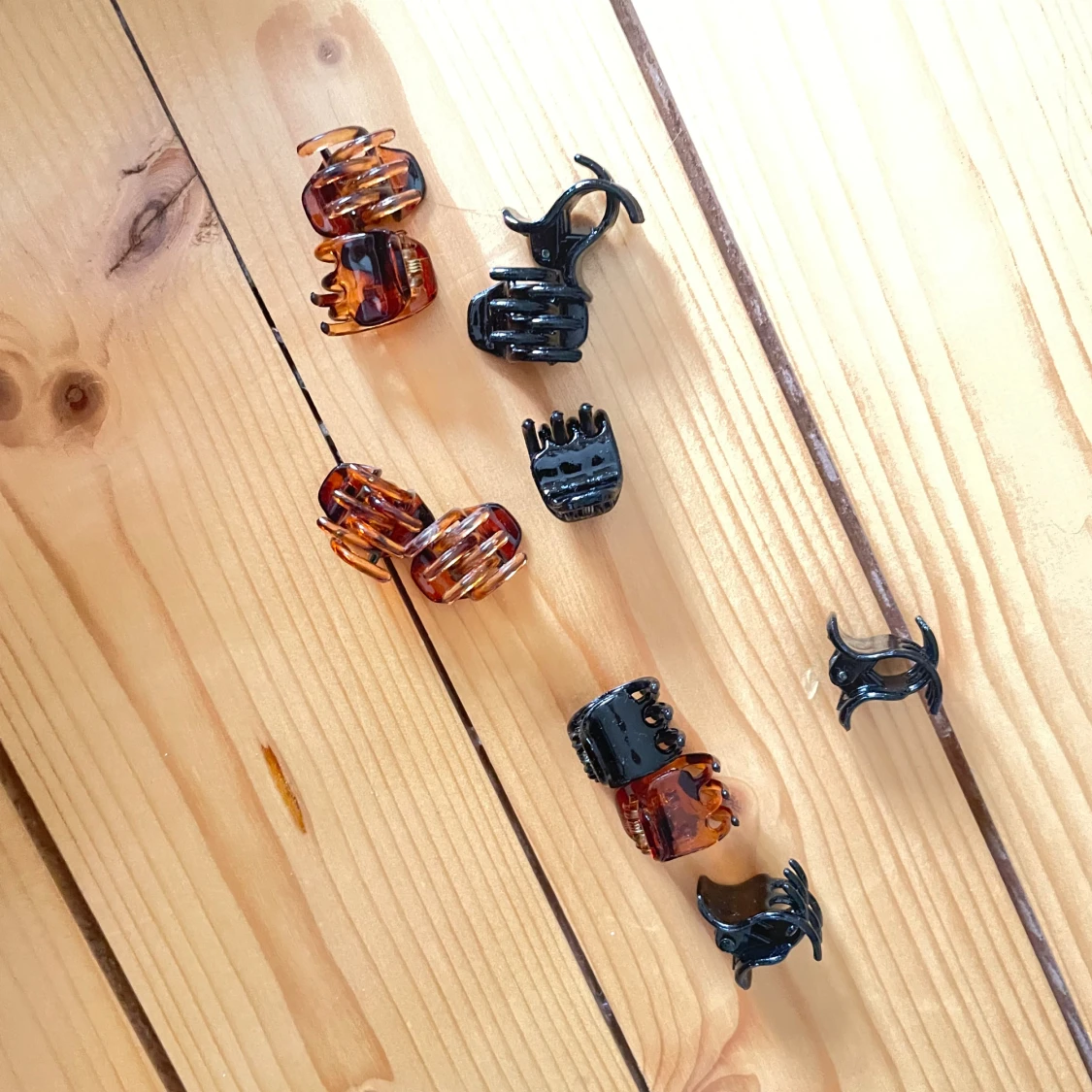 Säljer ett set med små hårklämmor i olika färger och former. Innehåller svarta, bruna, transparenta, rosa och röda klämmor, vissa med glittrig finish. Perfekta för att skapa snygga frisyrer eller sätta upp hårslingor! Kan köpas styckvis men då måste man köpa minst 4 stycken. 2kr/st, alla för 15