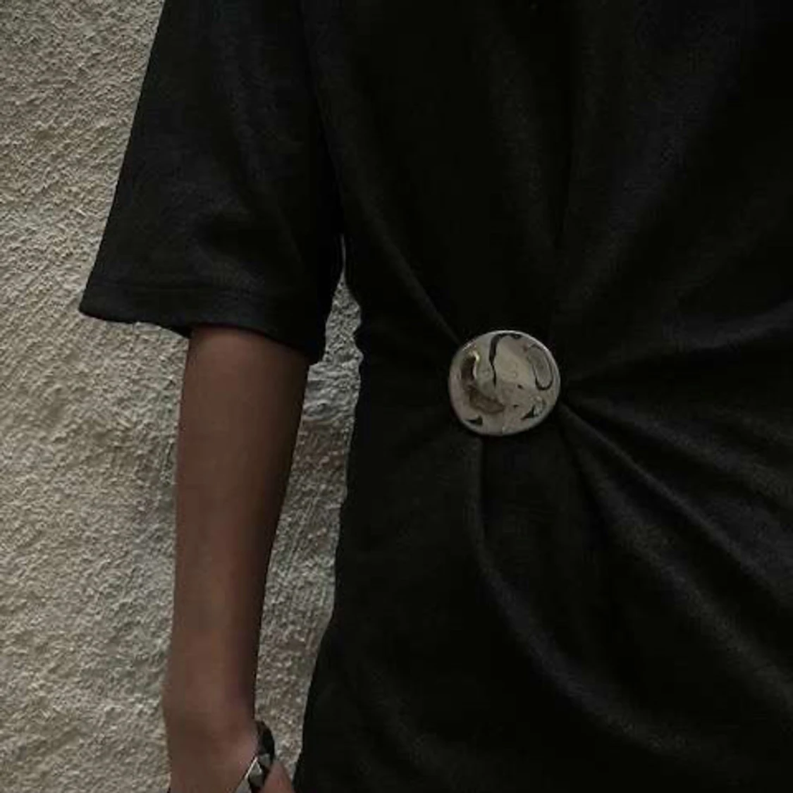 Silvrig rund MixClipxđ (clips pĂ„ baksidan) ca 7 cm