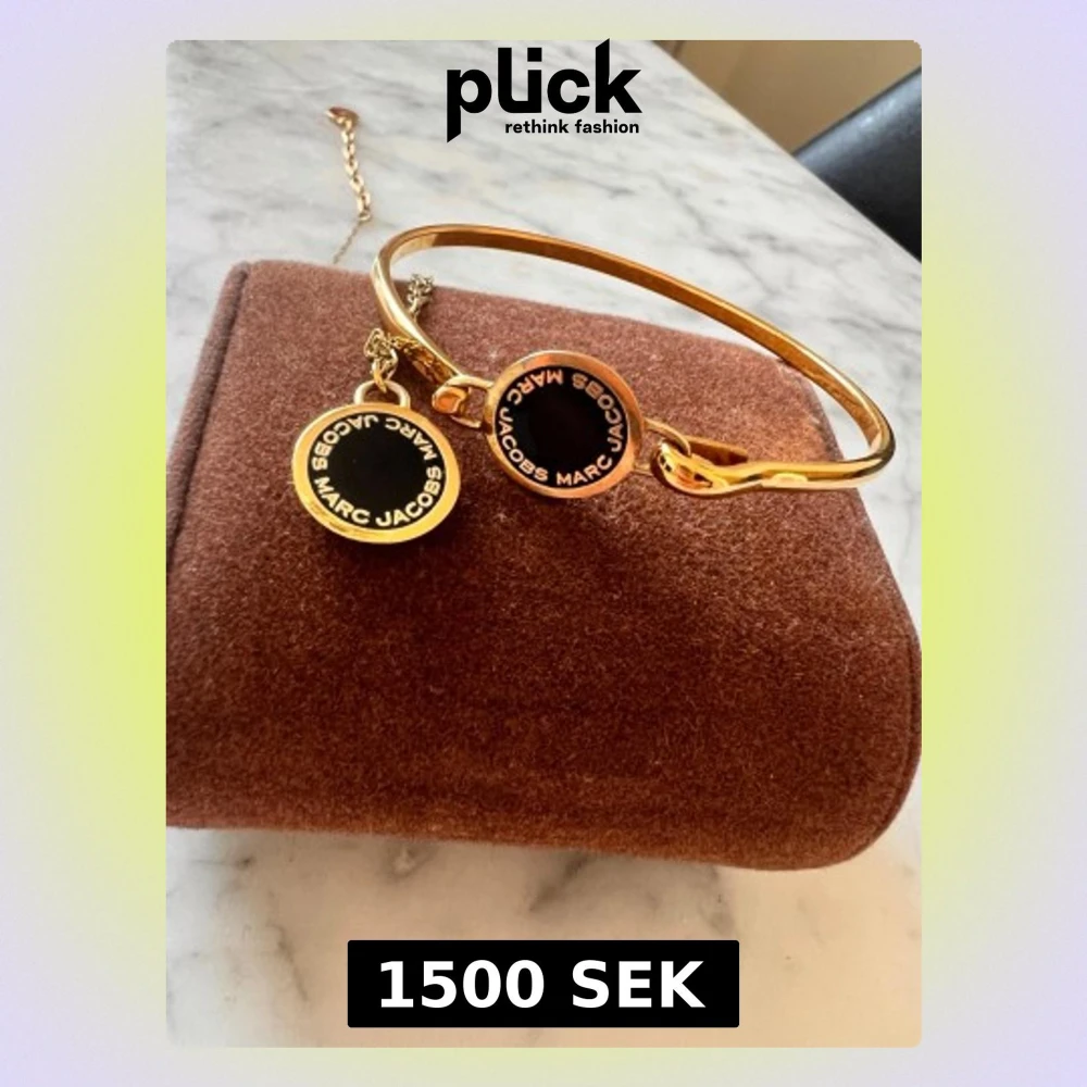 Bilderna visar ett armband och ett halsband från Marc Jacobs i guld och svart, men ingen väst syns.