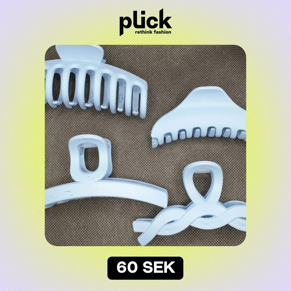 Hårklämmor, 4 st i olika storlekar, bra rejäl storlek. Tillverkade av akryl, blå färg. Rekommenderas.