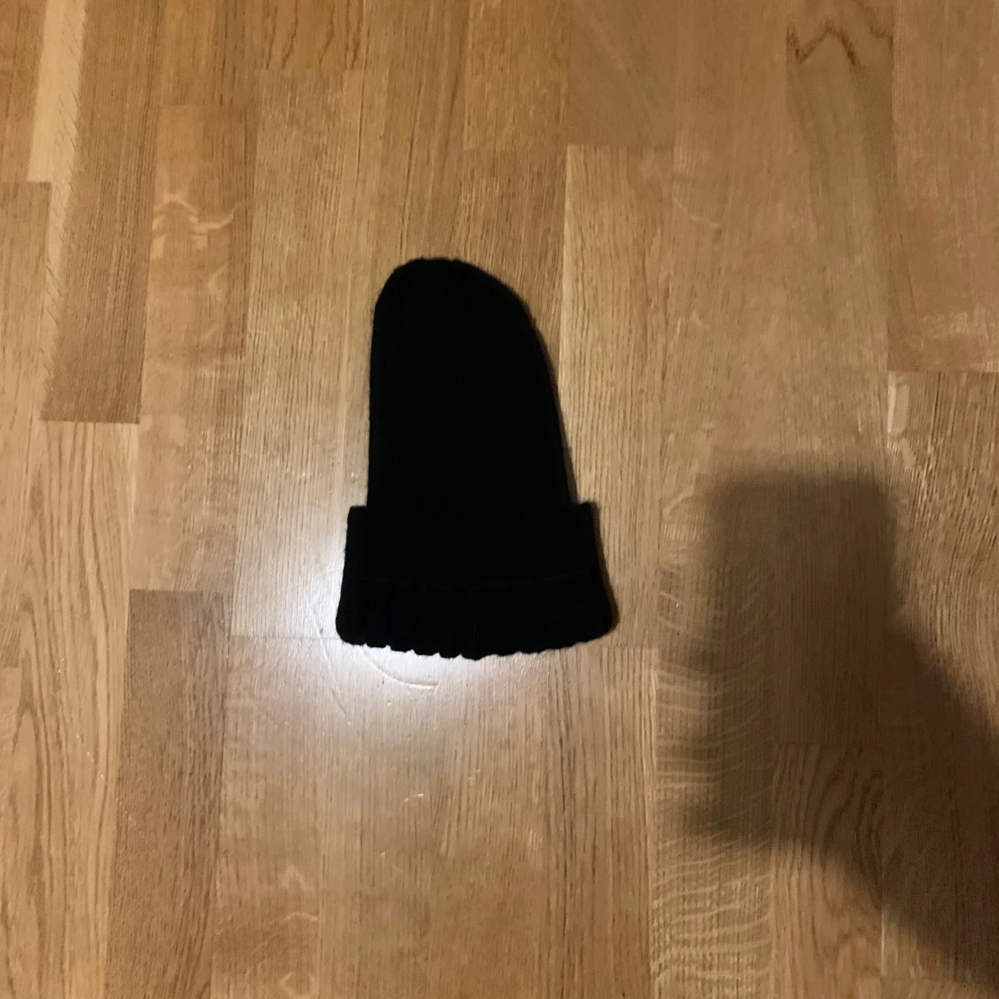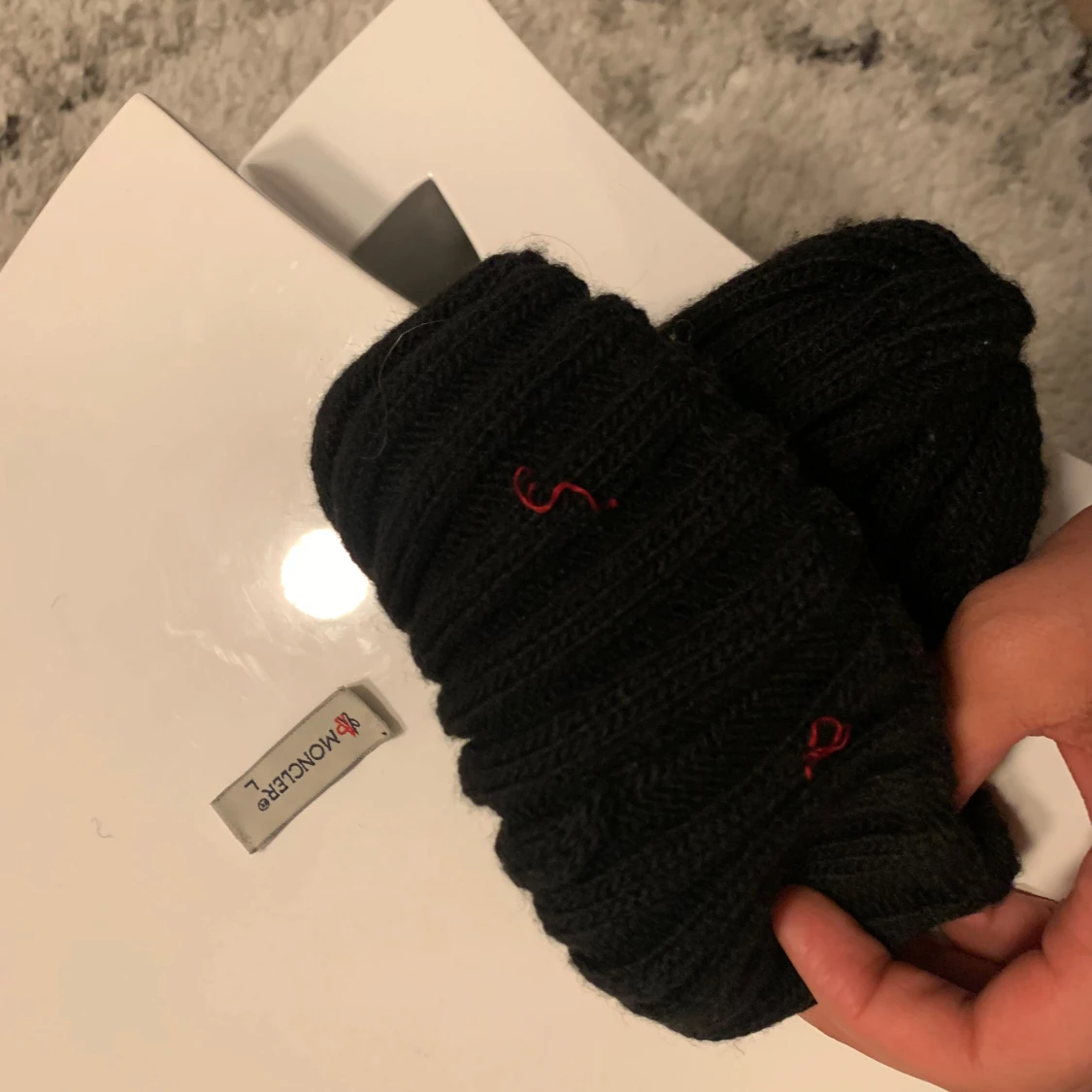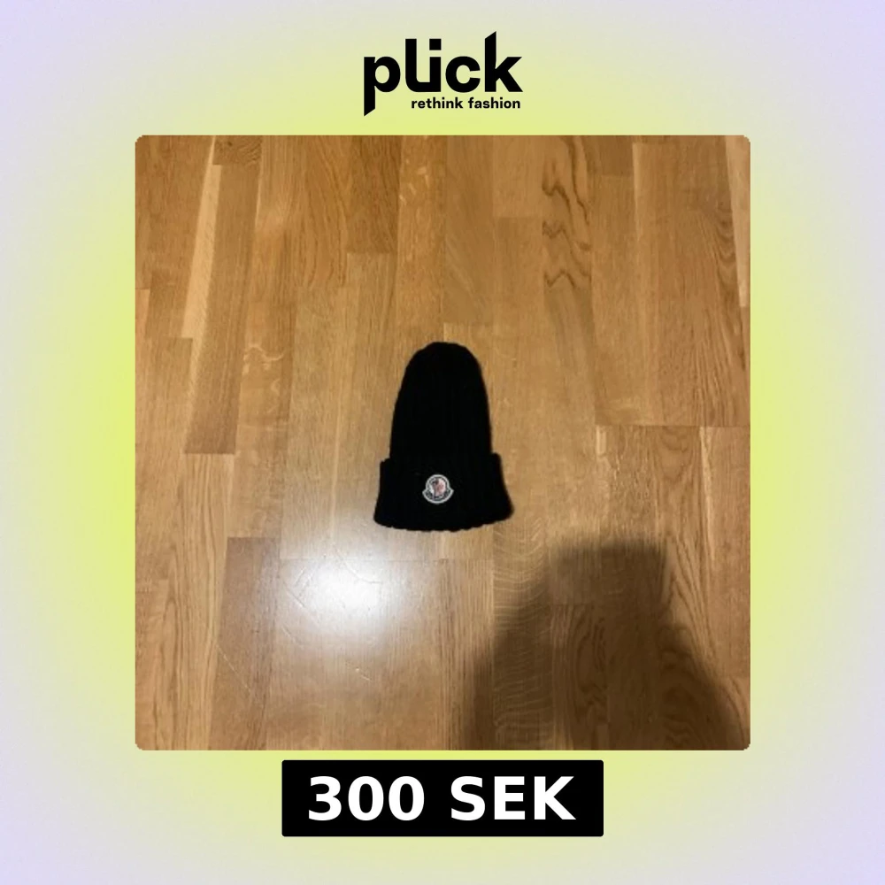 Snygg svart mössa från Moncler med ribbad design. Moncler taggen på insidan har lossnat men jag skickar med den.
