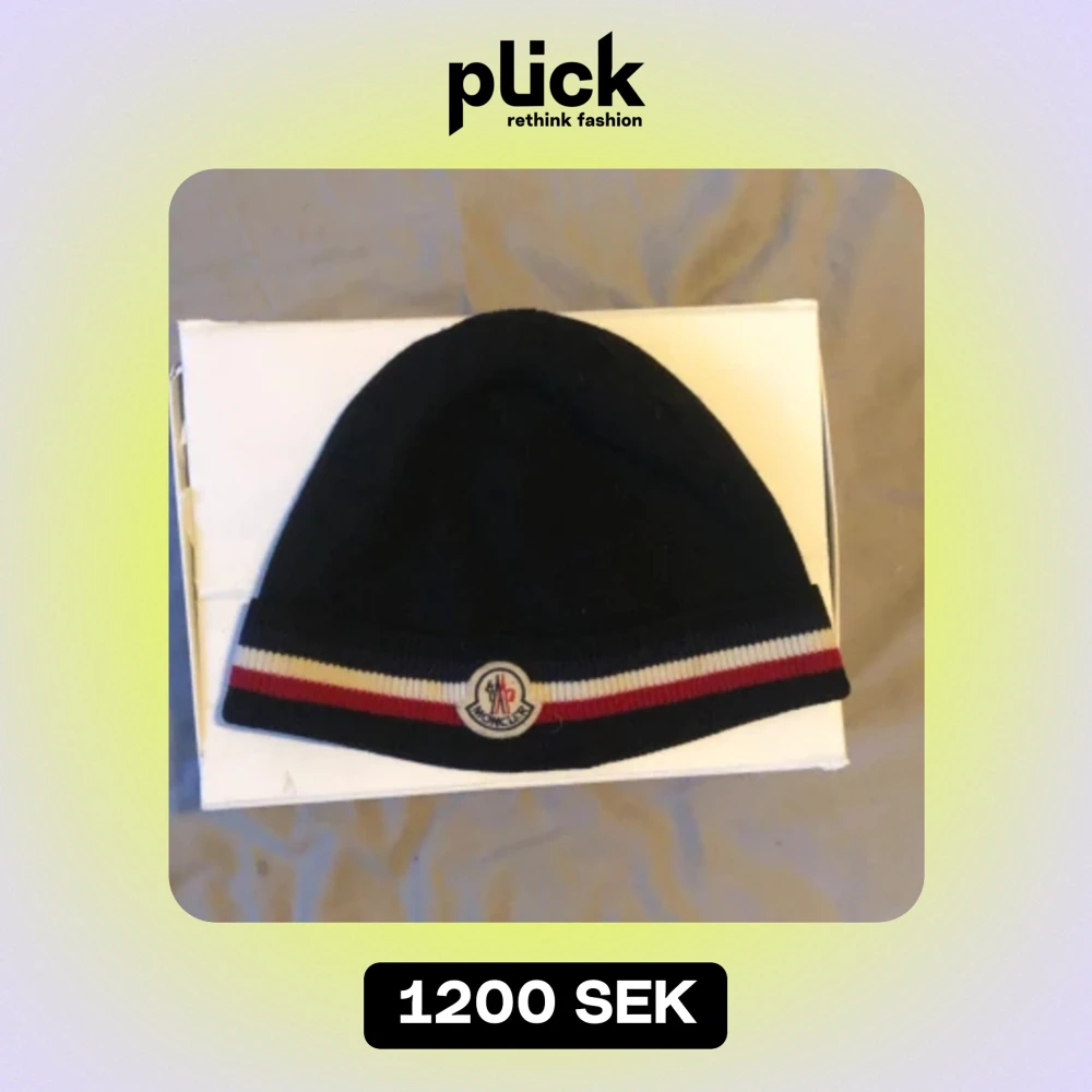 Moncler mössa från Monclers webbsida knappt använd inga defekter förutom på boxen som ni kan se allt i bilderna ingår
