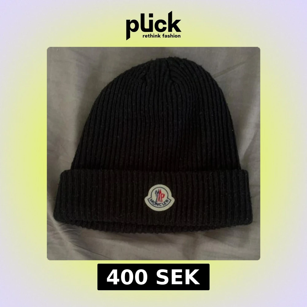 Svart ribbstickad mössa från Moncler med klassisk uppvikt kant och ikoniska Moncler-loggan framtill. Perfekt accessoar för kyliga dagar och en stilren detalj till din vinterlook.