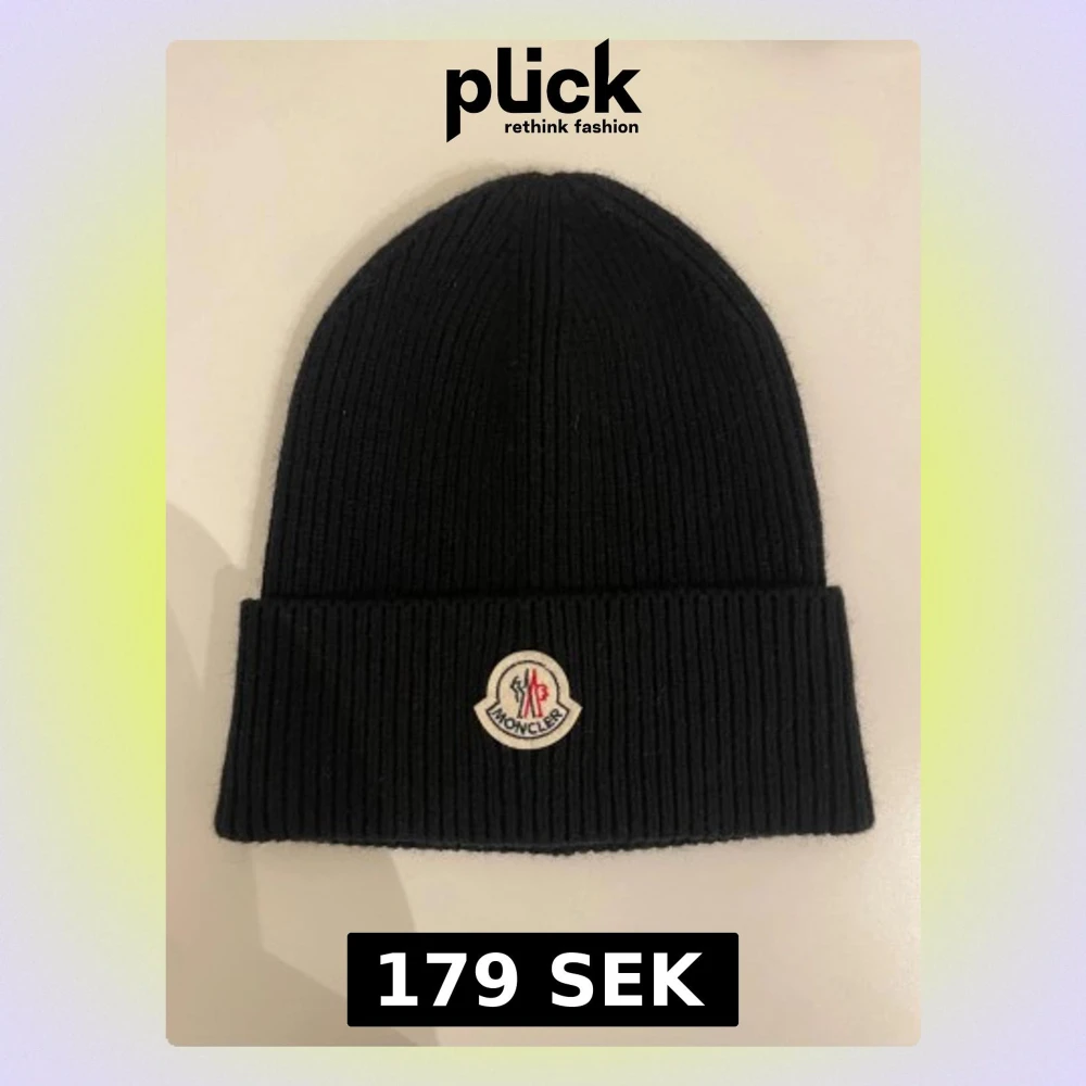 Svart moncler mössa i fint skick använd 5 gånger så den ser ny och fräsch ut