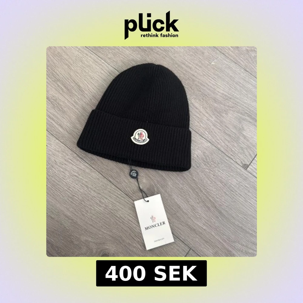 Svart ribbstickad mössa från Moncler med uppvikt kant och klassisk Moncler-logga framtill. Perfekt accessoar för kyliga dagar och enkel att matcha med olika outfits.