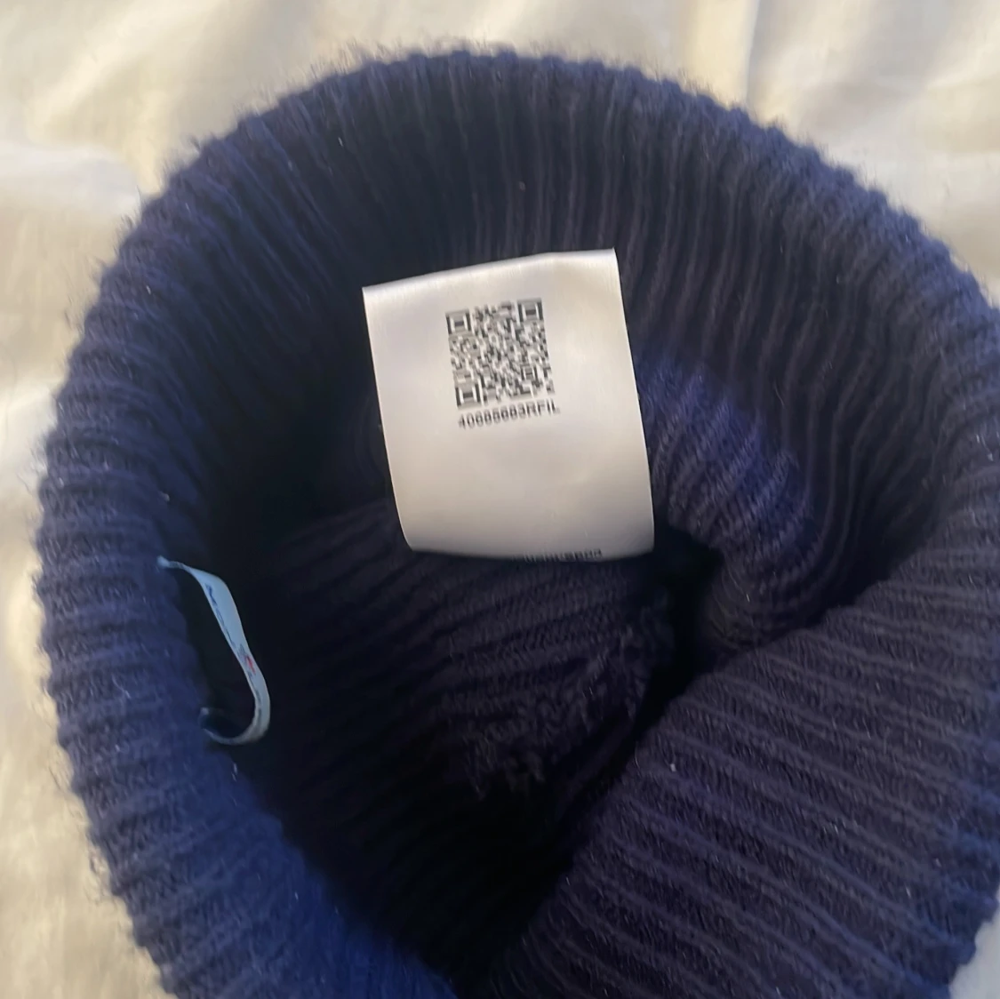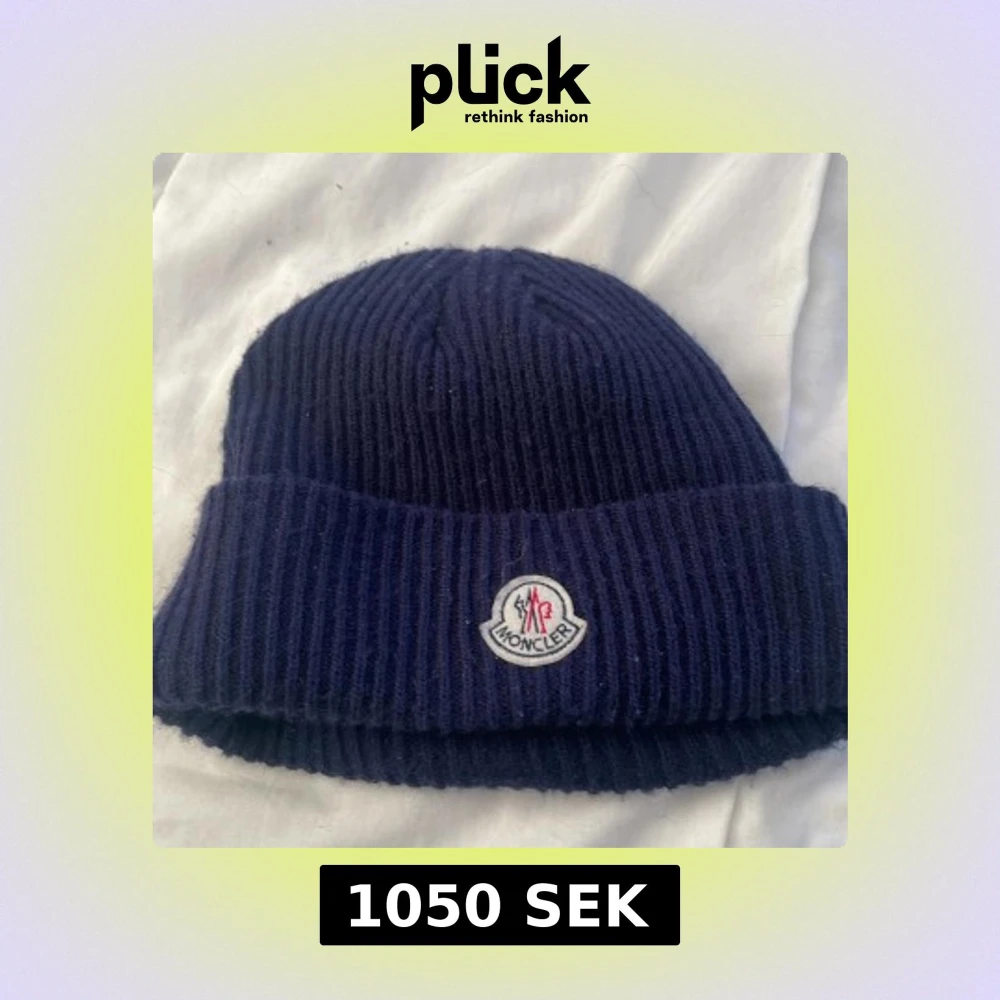 Snygg mörkblå mössa från Moncler med ribbad design och broderad logotyp framtill. Perfekt för kyliga dagar och ger en stilren look.