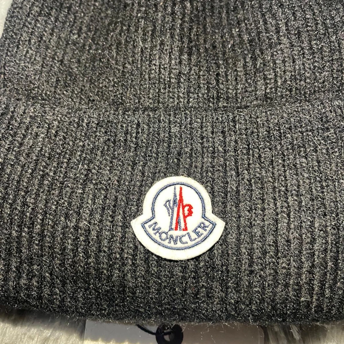 Snygg svart stickad mössa från Moncler med broderad logotyp framtill. Perfekt för att hålla värmen under kyliga dagar. Klassisk design som passar till det mesta.